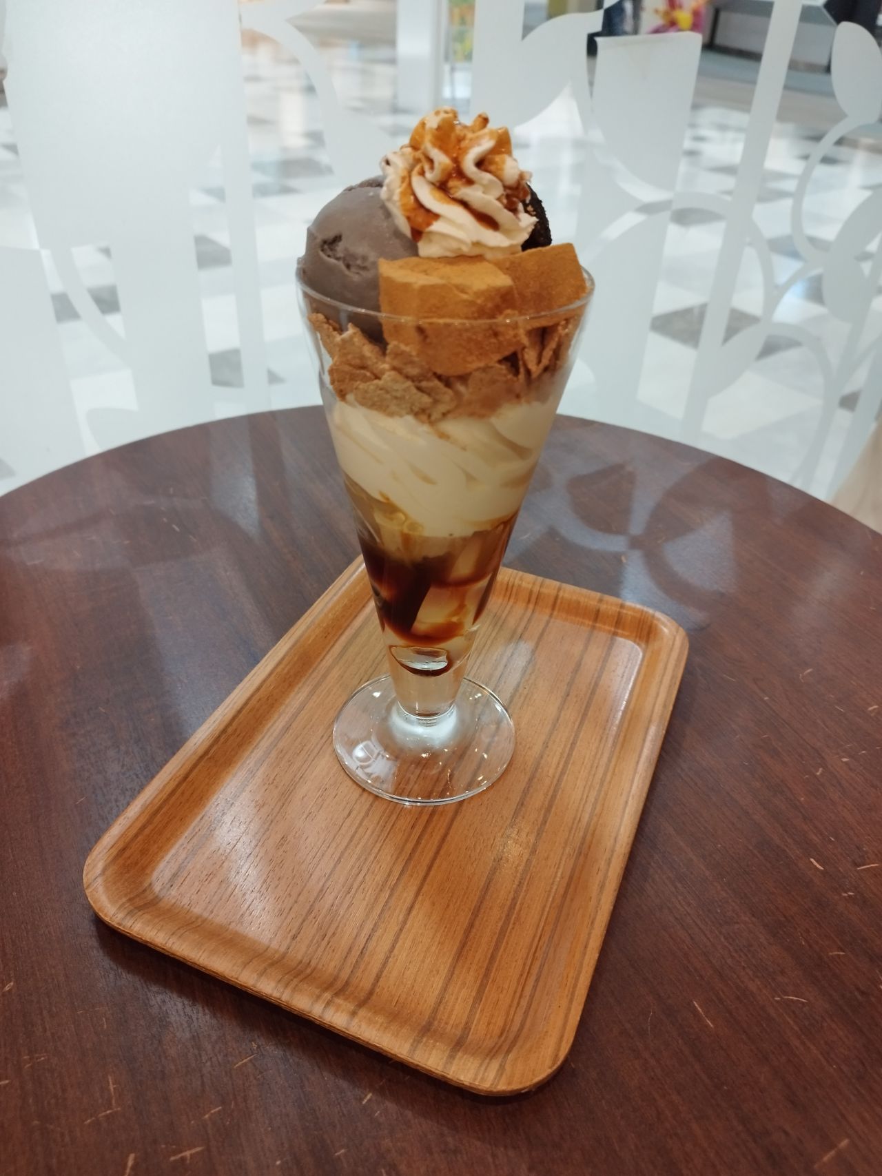 黒胡麻アイス、黒胡麻あんこ、もちもちのわらび餅を使用した、黒胡麻の香ばしい風味と落ち着いた甘みが感じられるスイーツです。
