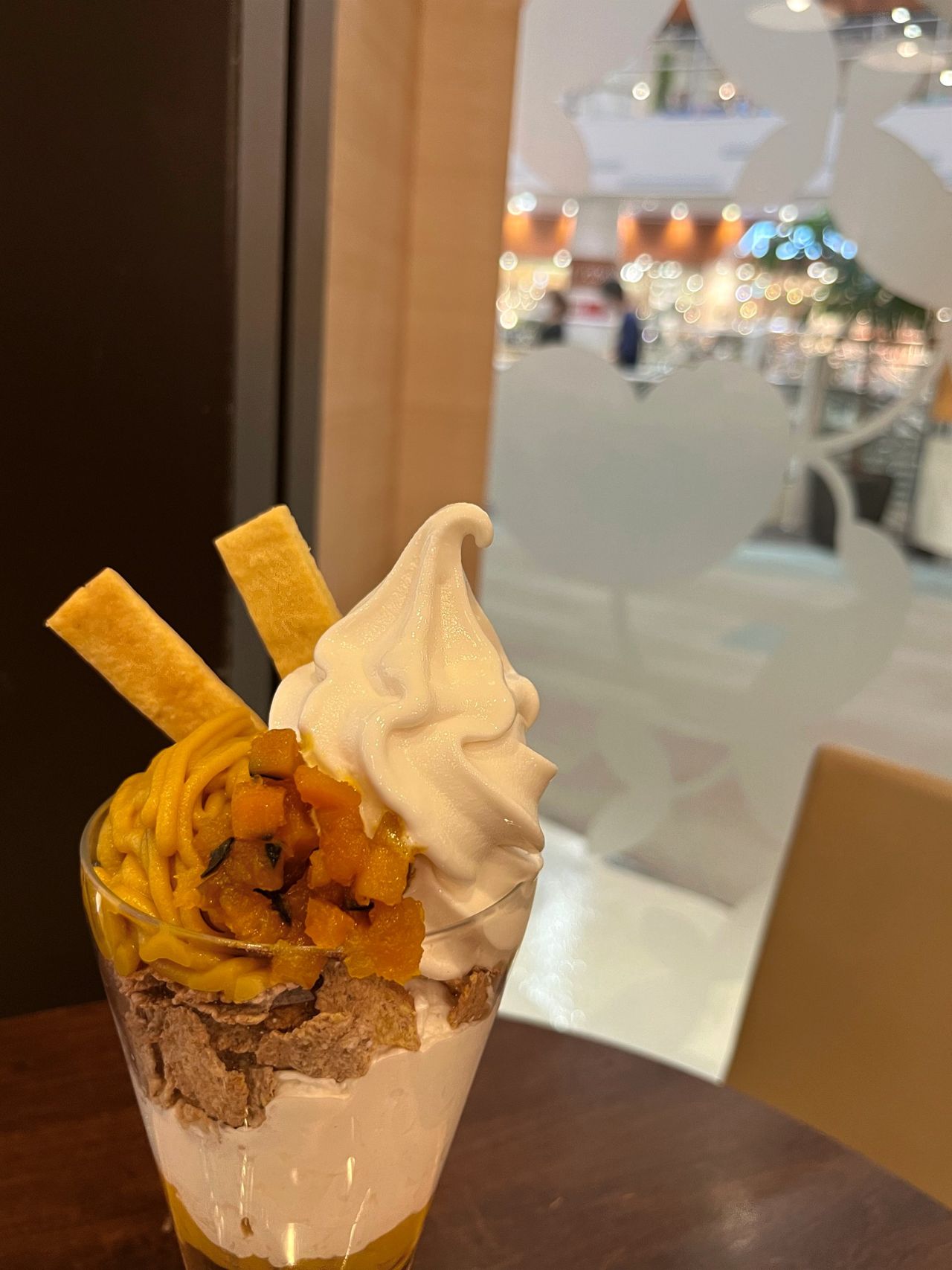 スタッフは、「かぼちゃのモンブランパフェ」が登場して、