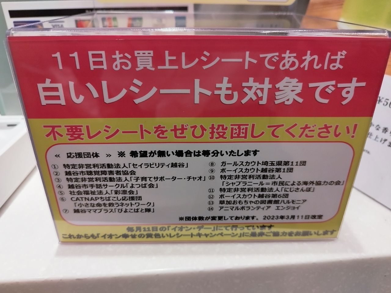 毎月11日はイオンの幸せの黄色いレシートの日です。