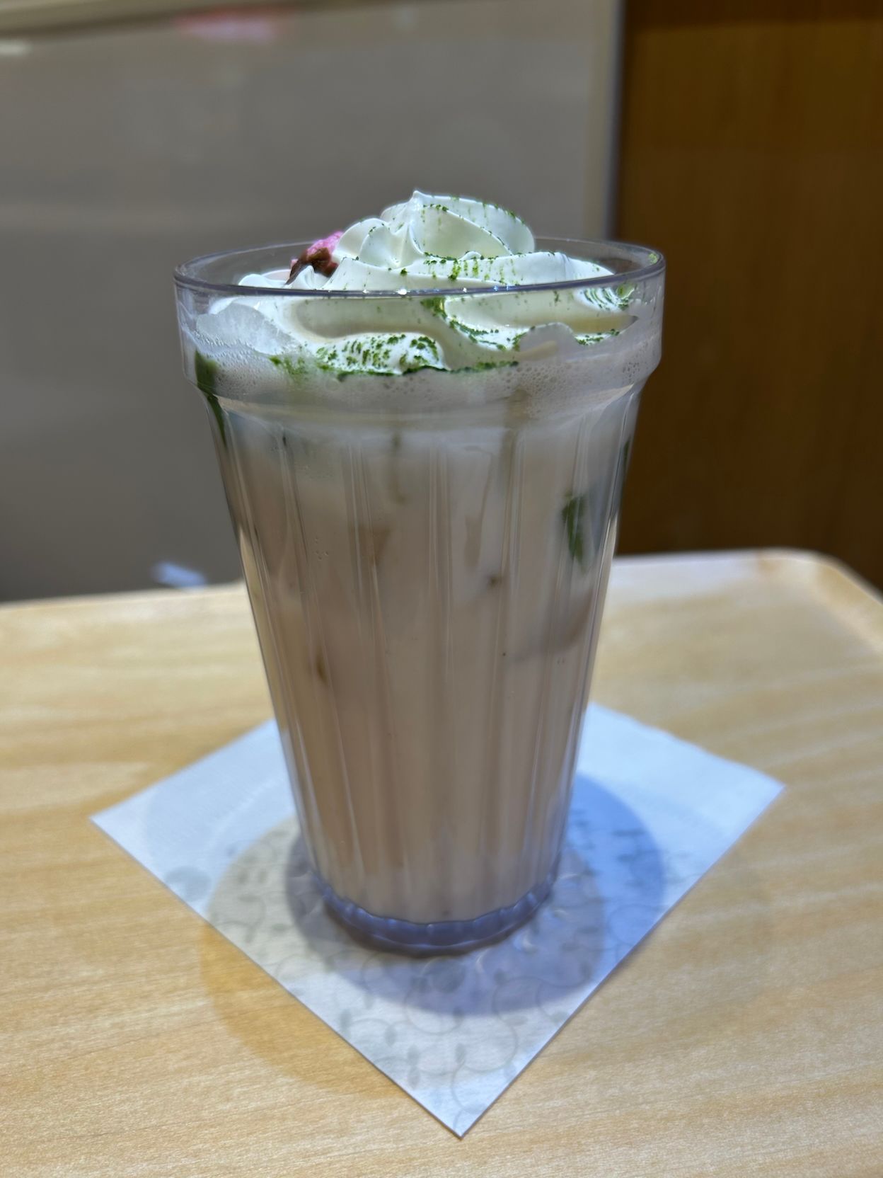 桜の優しい甘さに抹茶のきりっとした渋みとヨーグルトの酸味が合わさったラッシーです。