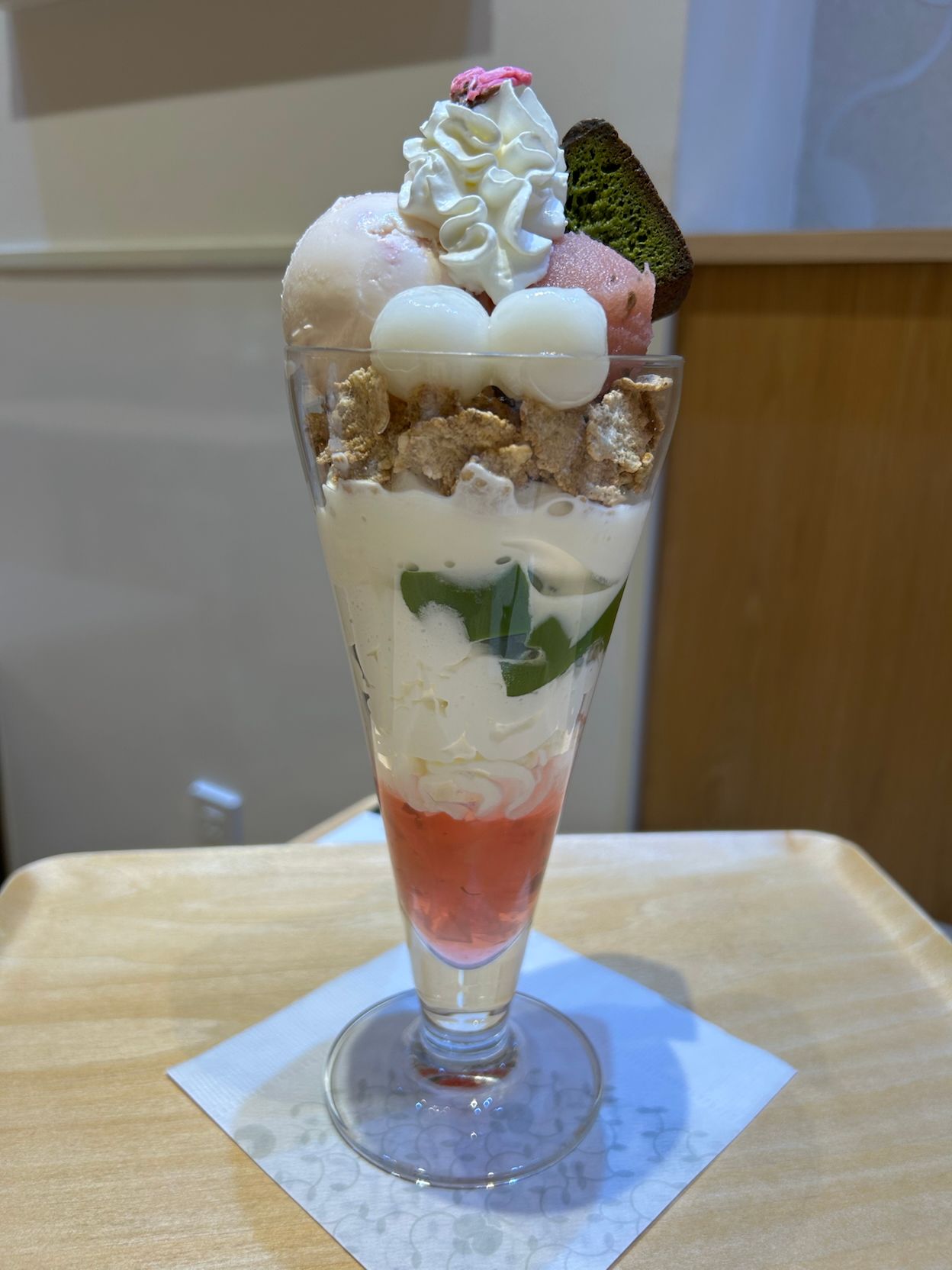 桜と抹茶にヨーグルトを加えた新感覚のパフェです。
