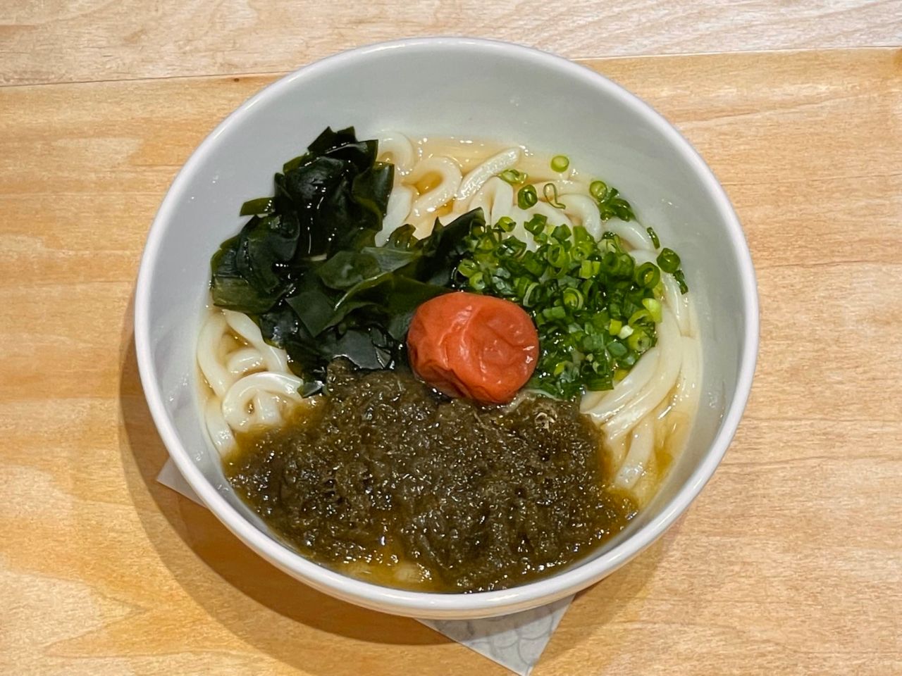 まず本日は、梅とろろ昆布と生わかめうどん(HOT )をご紹介