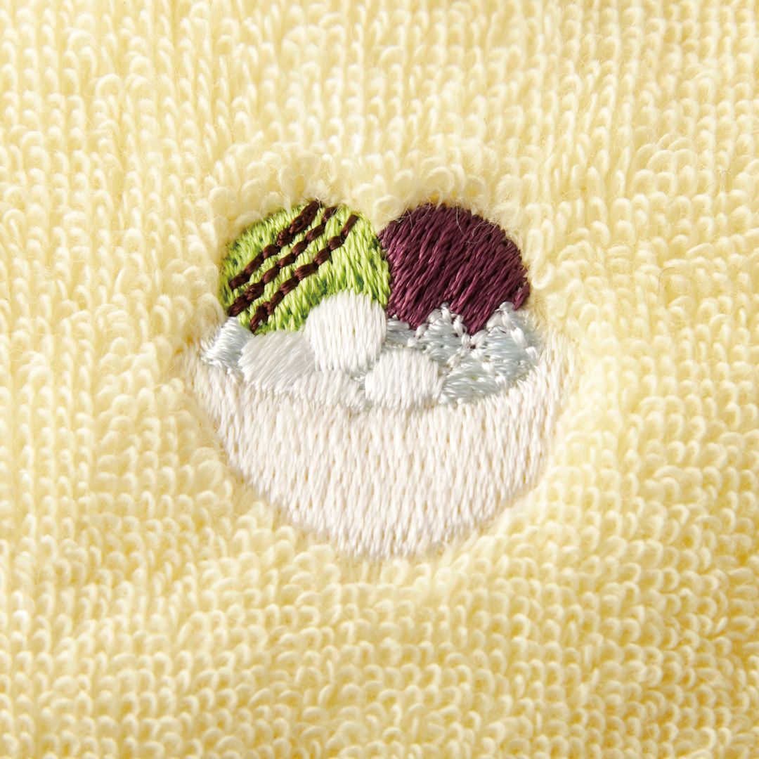 ふわふわ手触り良く使い心地も良い「今治タオル」に、nana's green tea人気のスイーツ「抹茶クリームあんみつ」を刺繍しました。