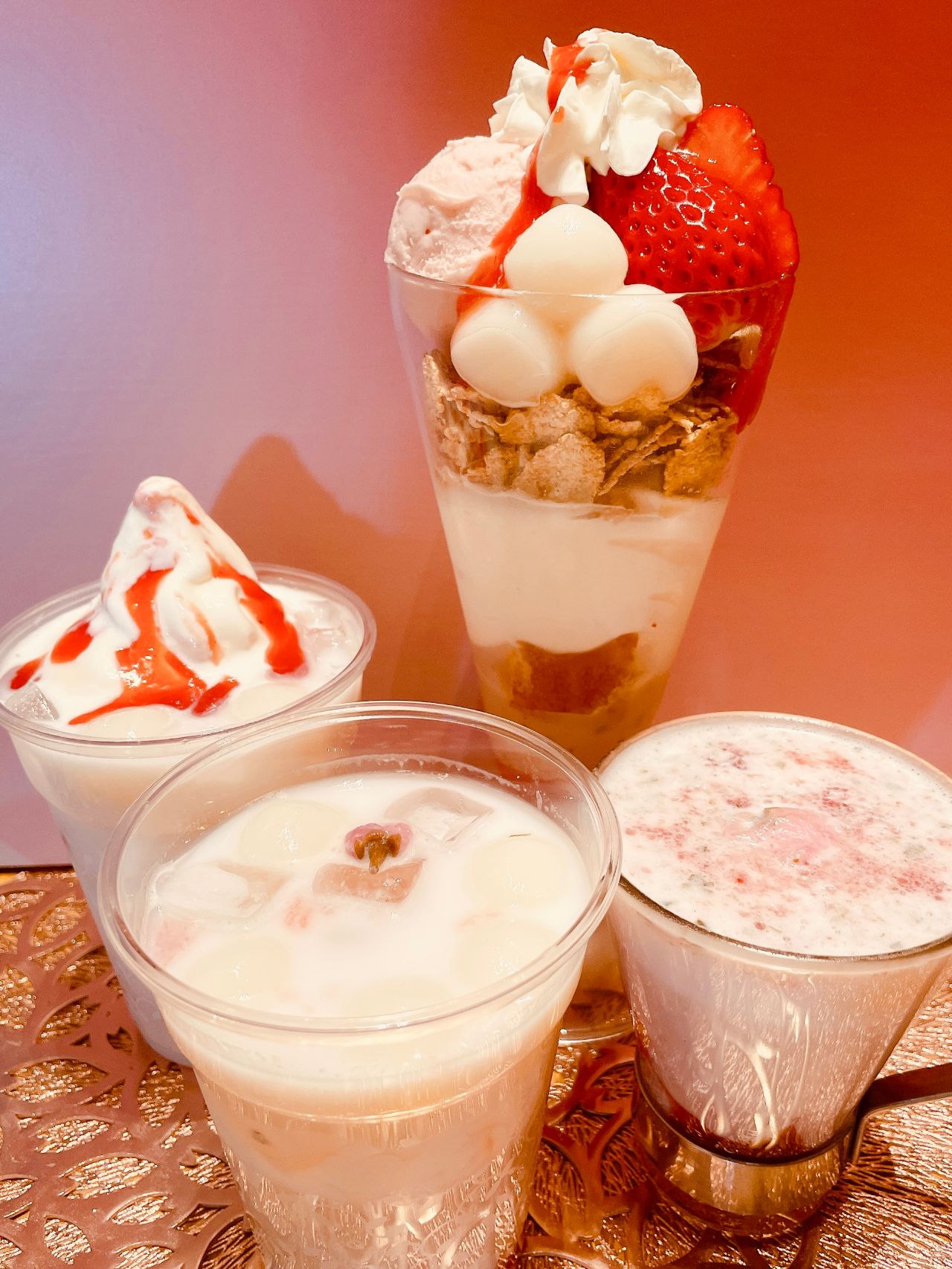 ・桜ストロベリー白玉ラテ HOT/ICE M¥720 L¥820