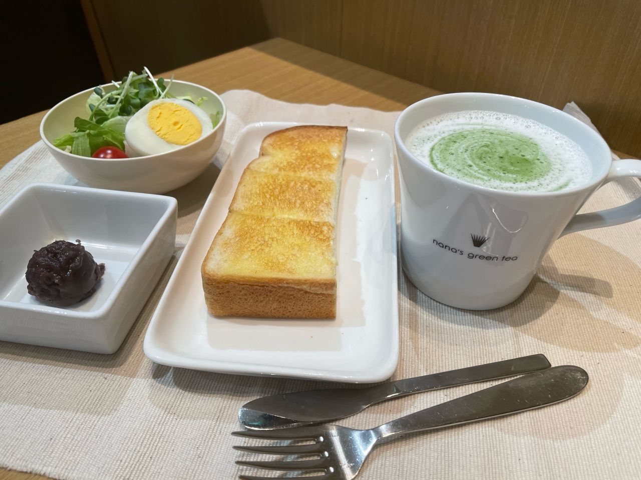 小倉あんバタートーストとサラダ・抹茶ラテのセット ¥650