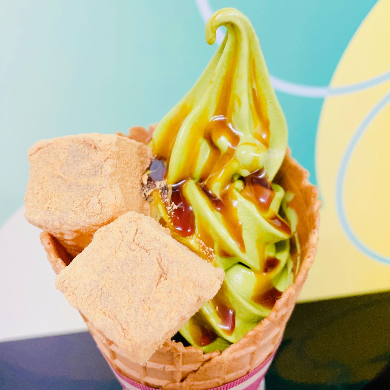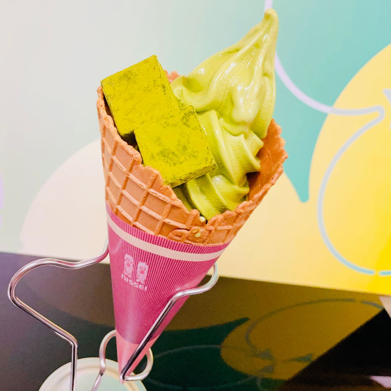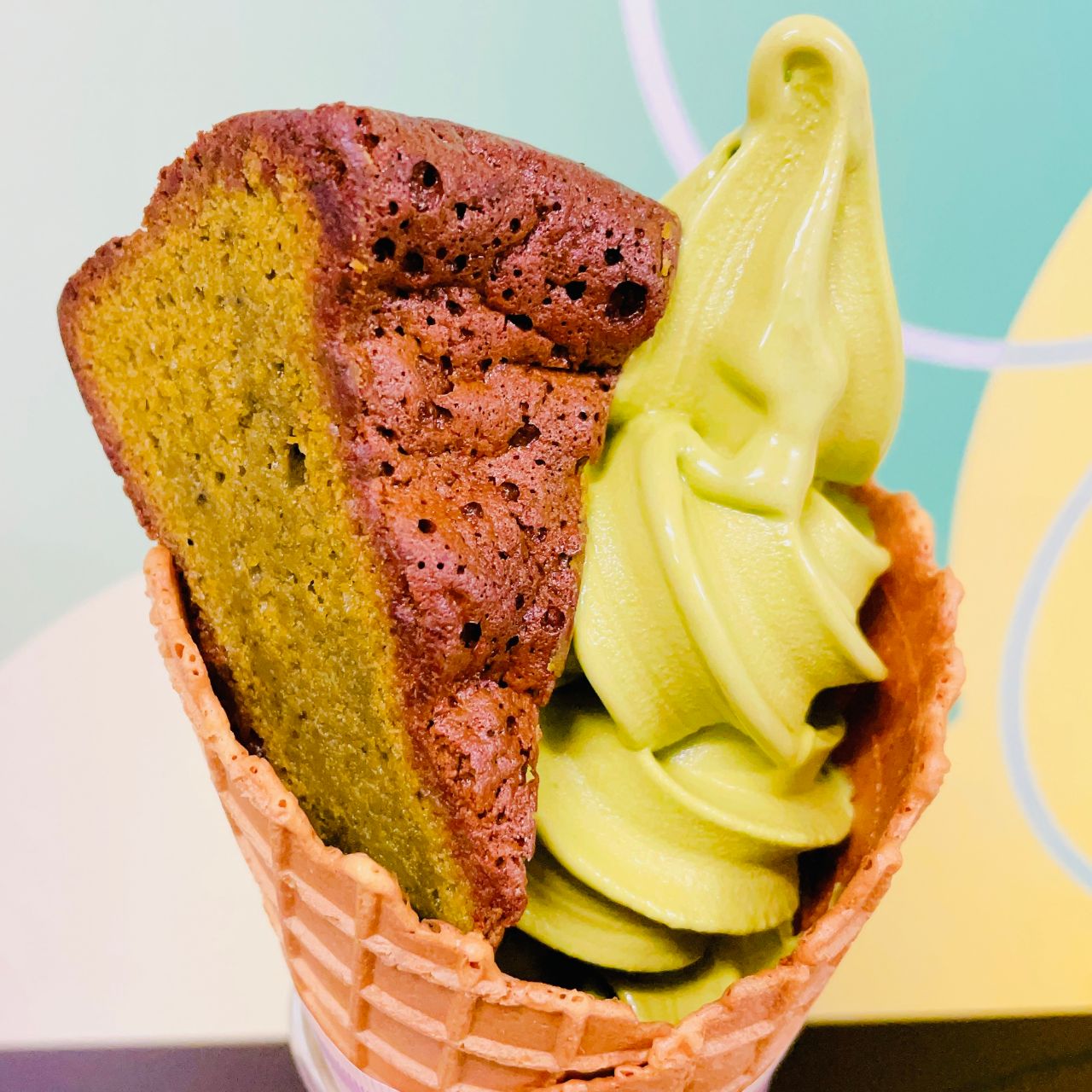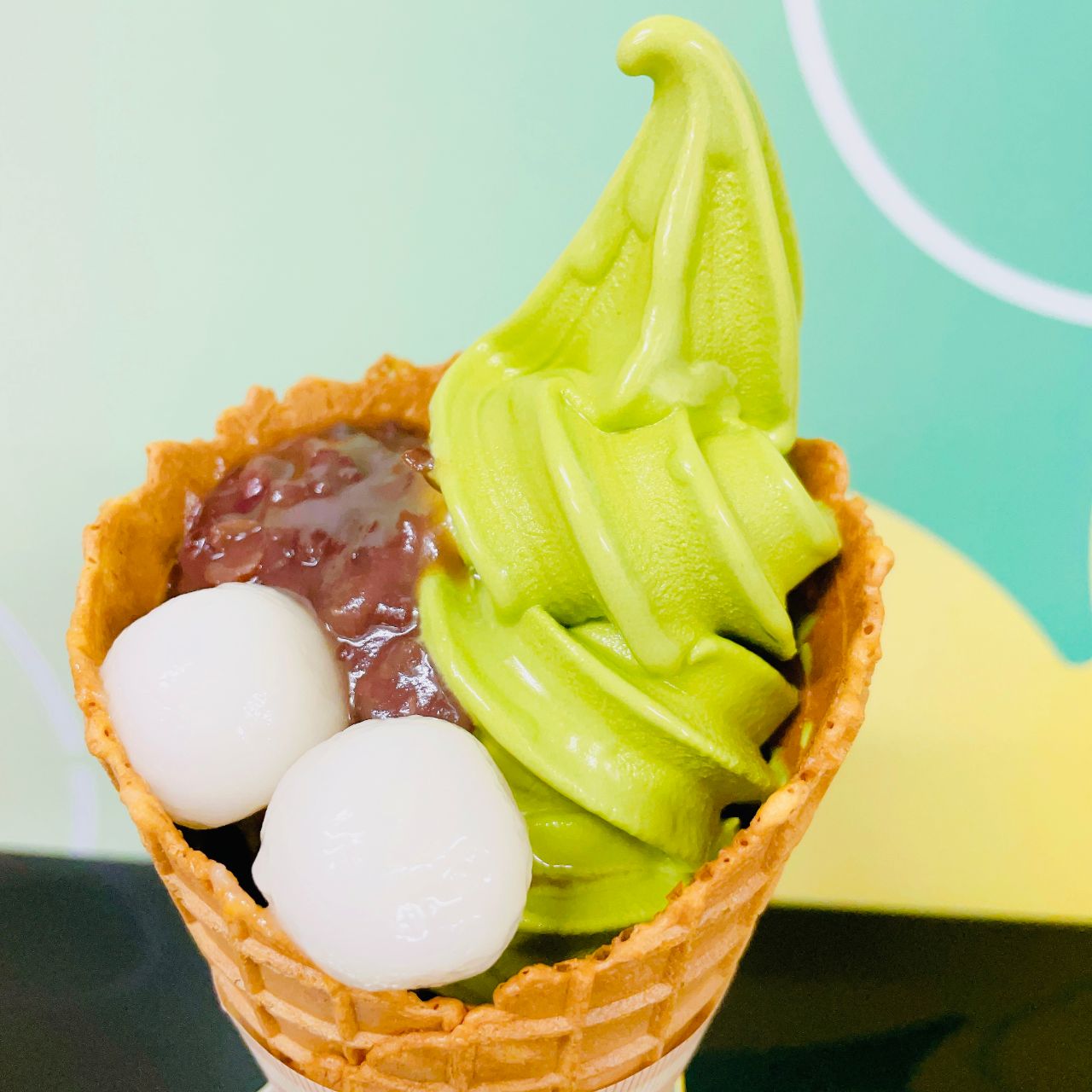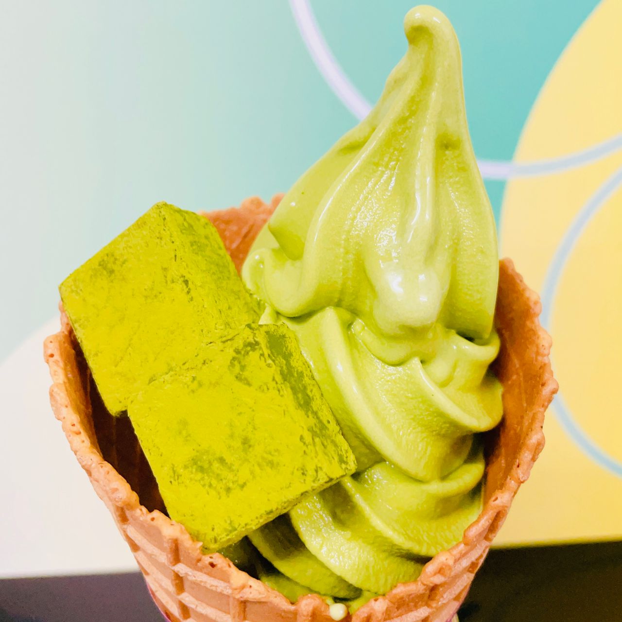 甘すぎず濃厚な抹茶ソフトがワッフルコーンとよく合います♪♪