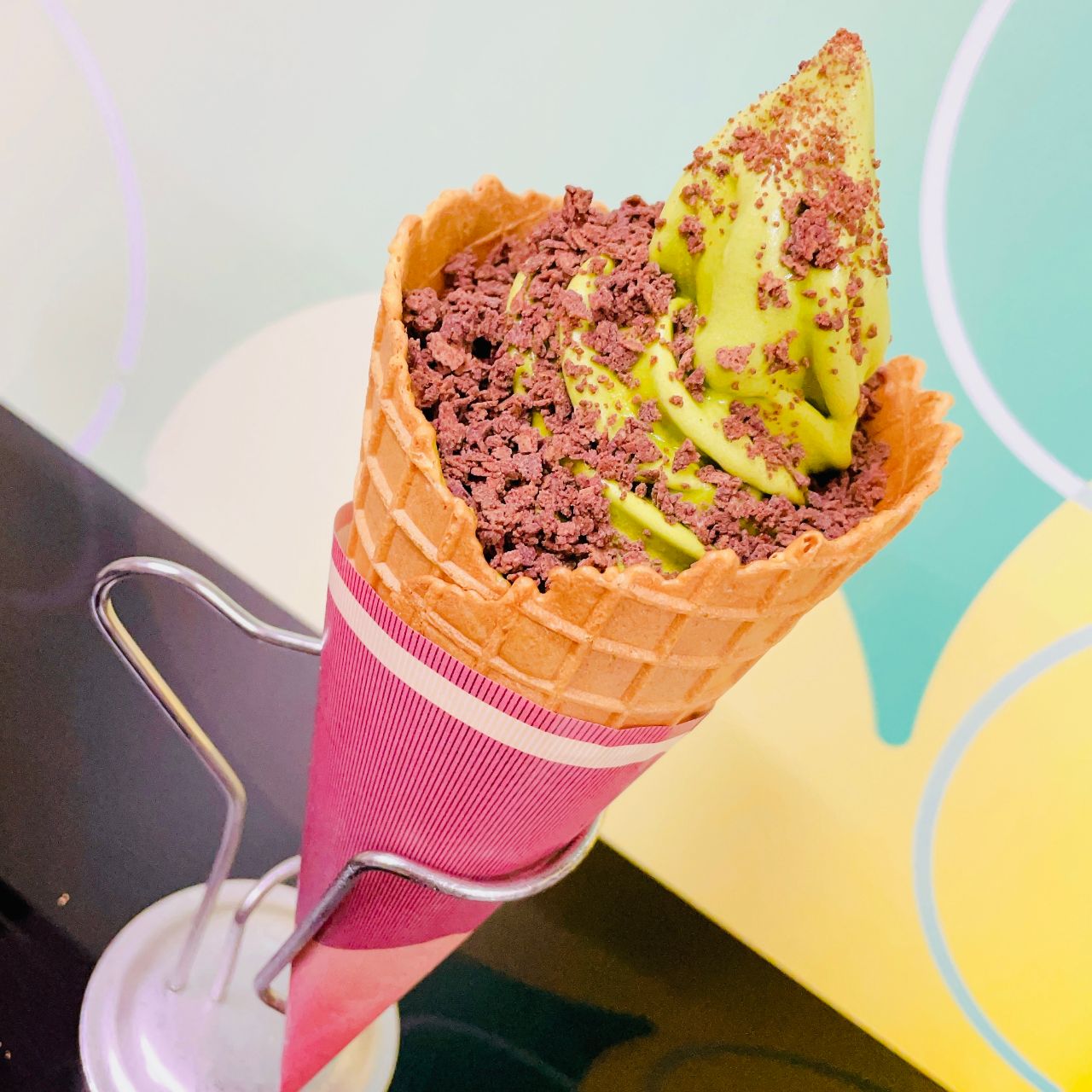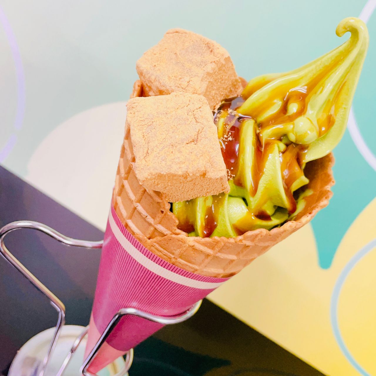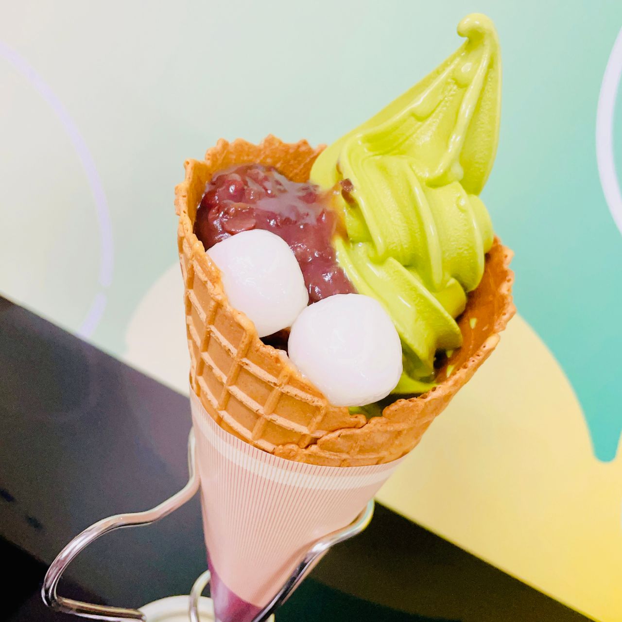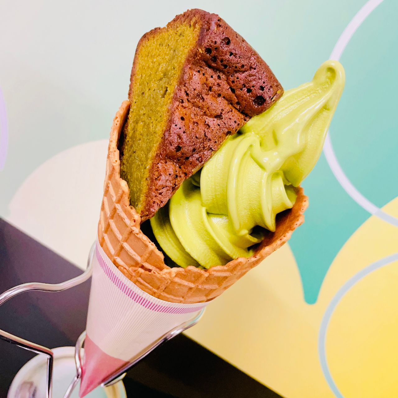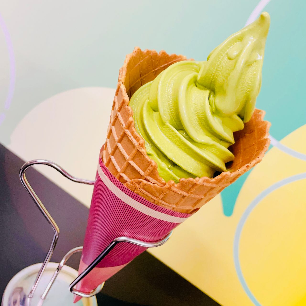 甘すぎず濃厚な抹茶ソフトがワッフルコーンとよく合います♪♪