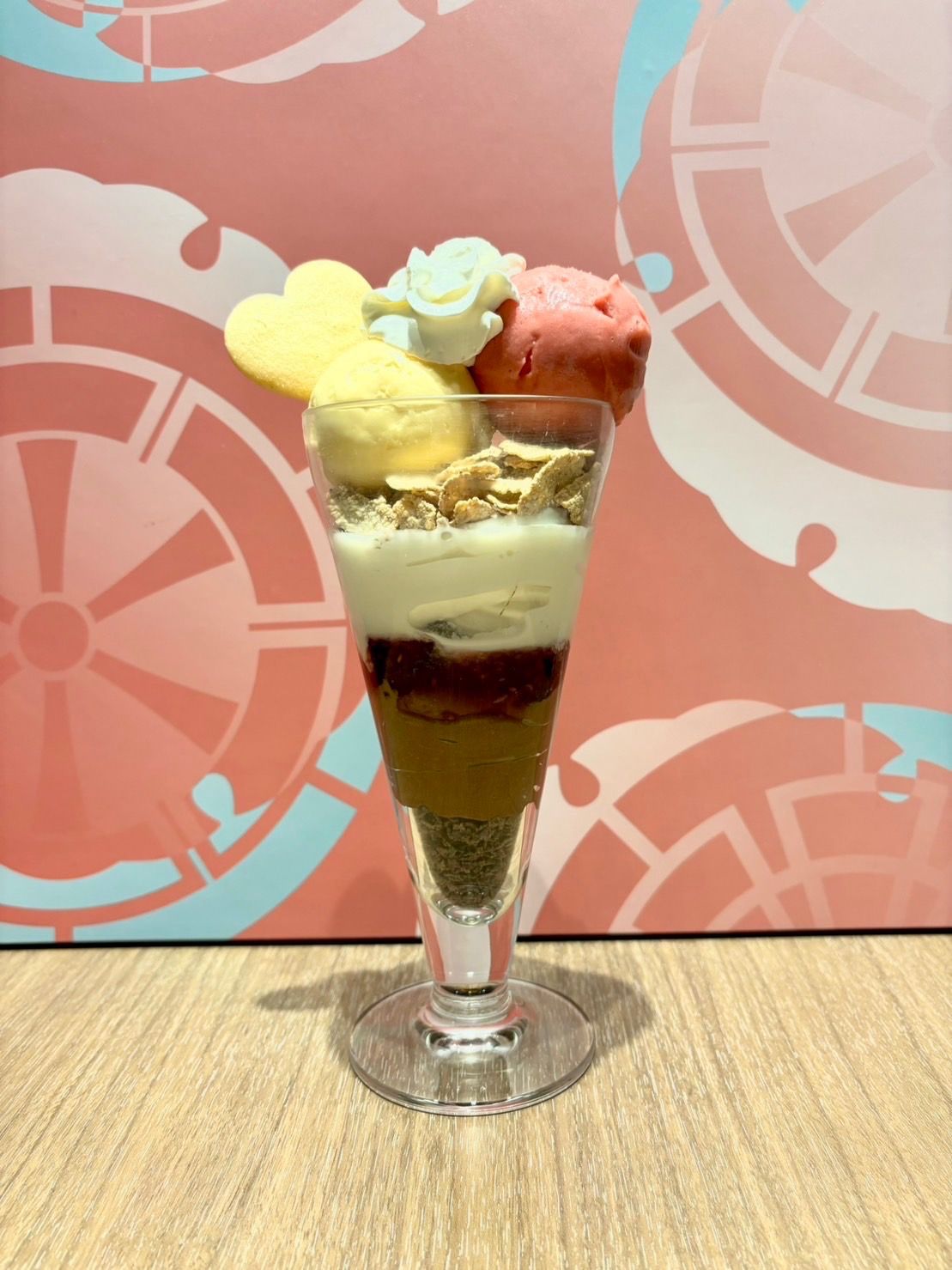 サクサクのフレークにさっぱりとしたフランボワーズシャーベットとバニラアイス