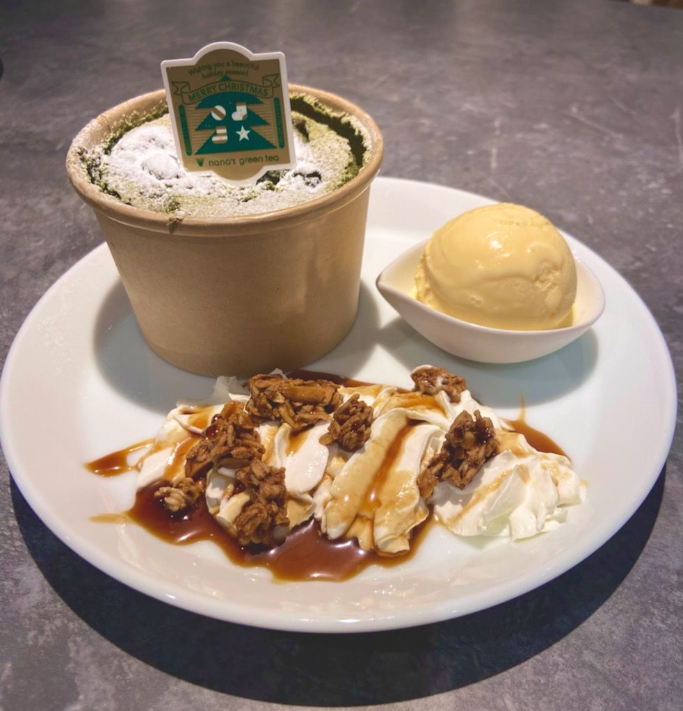 "抹茶シフォン フォンダンプレート バニラアイス添え"