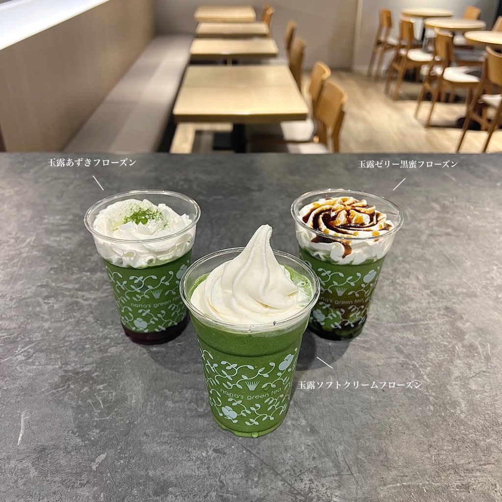 左から順に「玉露あずきフローズン」「玉露ソフトクリームフローズン」