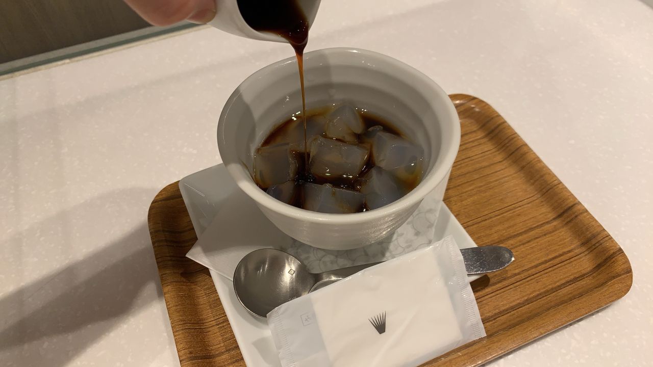 そんな寒天ですが、黒蜜をかけるとキラキラして写真映えもします。