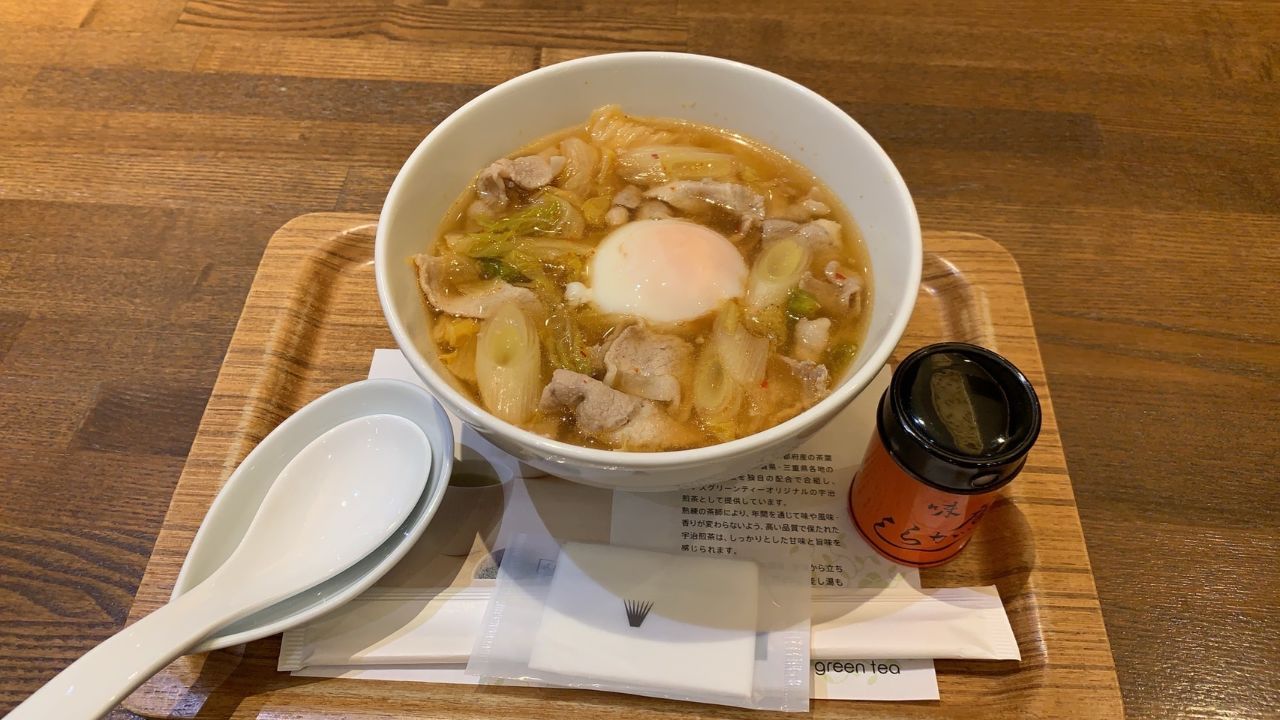 スタッフおススメのランチセットの組み合わせは豚キムチうどんに「わらび餅」、「抹茶ラテHOT」です☆