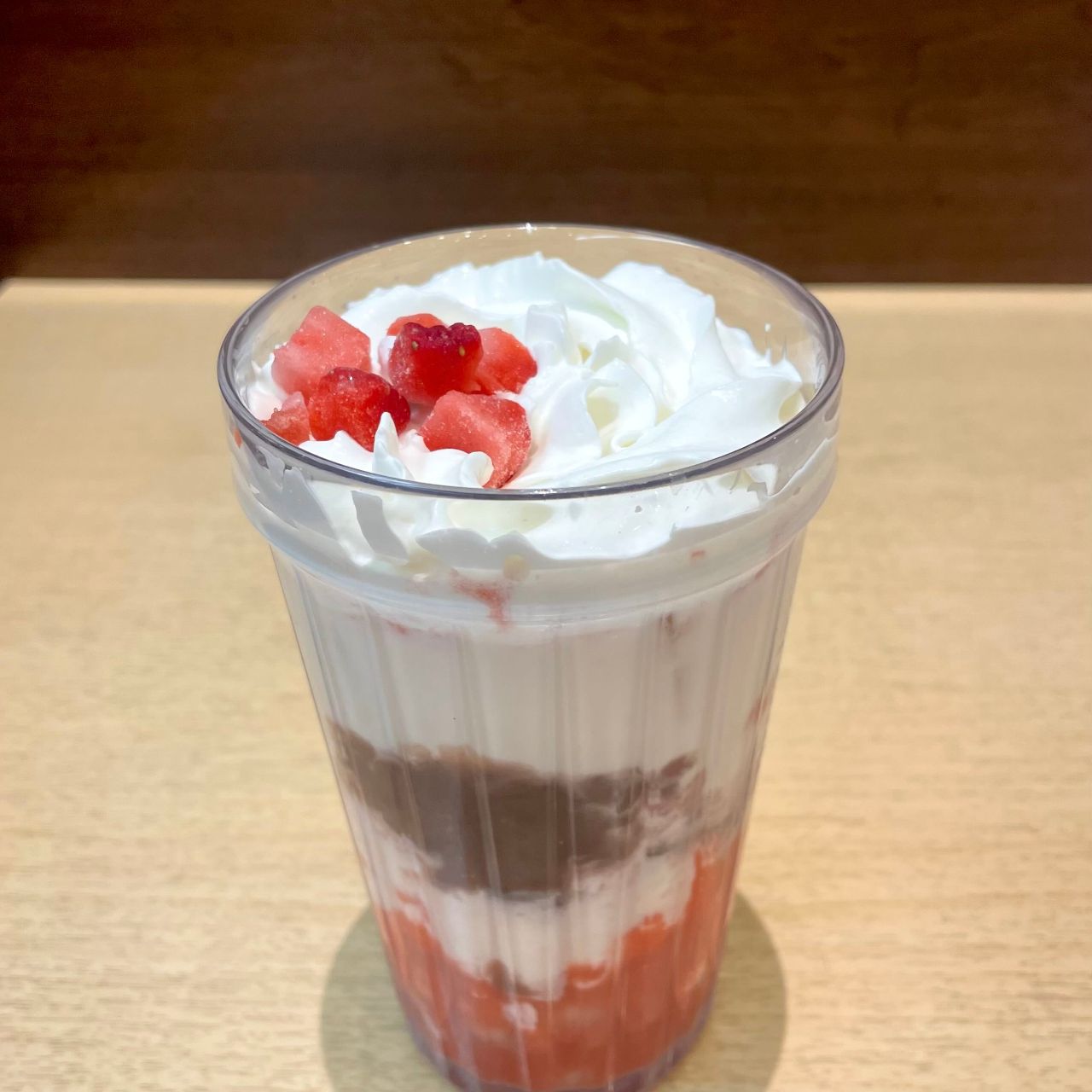 苺もあんこも粒白玉もクリームも入った贅沢ドリンクをぜひご賞味くださいね。