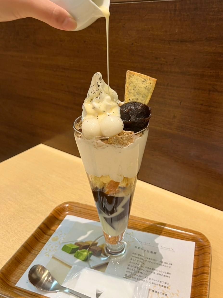 私のおすすめはソフトクリームにホワイトチョコソースをたっぷりかけることです!濃厚なソフトクリームになり、パフェ全体の美味しさがUPします⤴︎⤴︎⤴︎