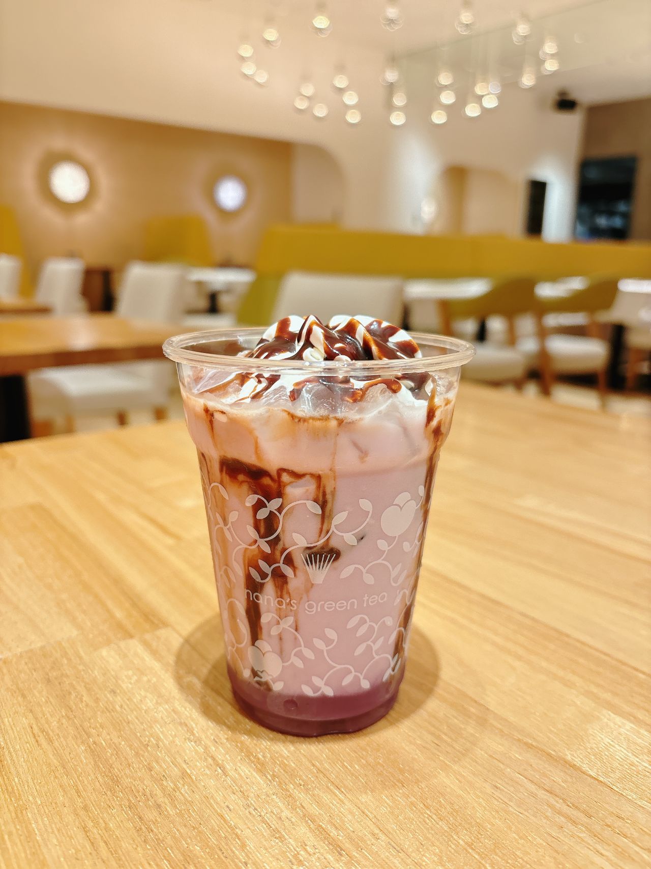 チョコレートの甘さも感じる紫いもラテに変身しました!