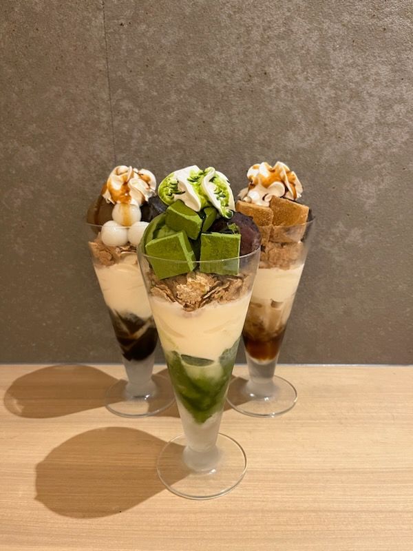 抹茶白玉パフェ・抹茶生チョコレートパフェ・ほうじ茶生チョコレートパフェ