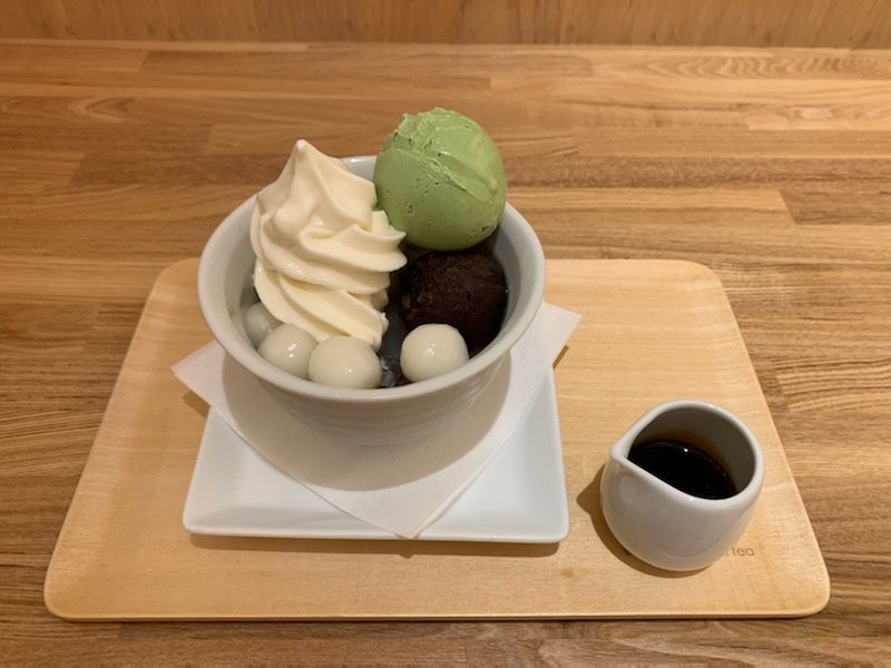 こちらはソフトクリームあんみつに抹茶アイスのトッピング♡