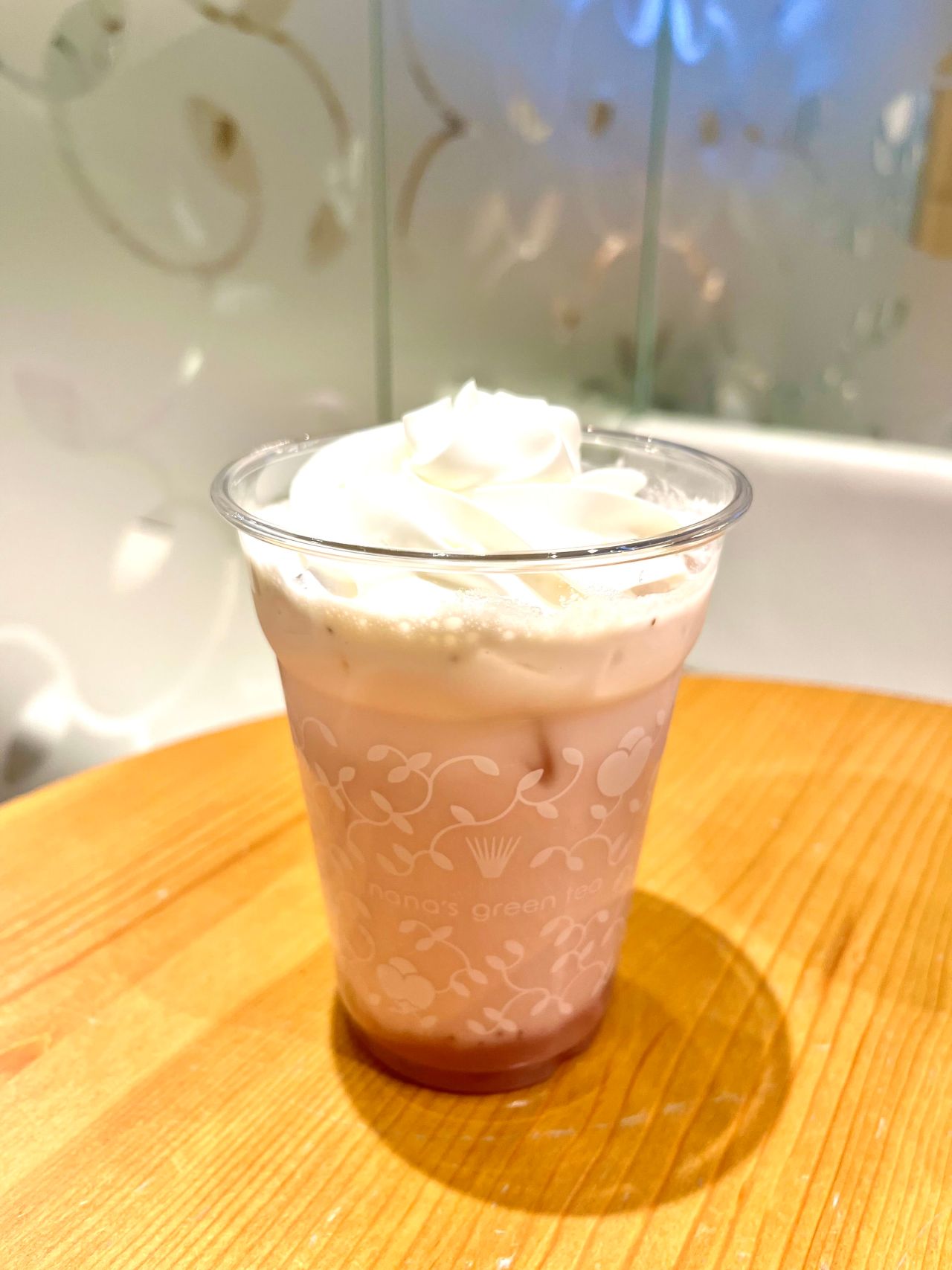 こちらのラテ、下に苺あんソースが入っていて、