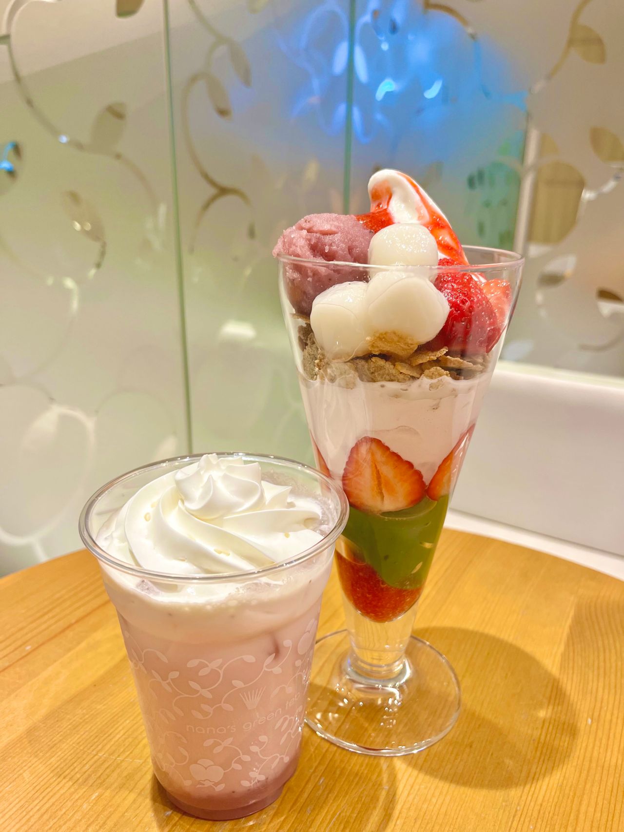 苺あん白玉パフェと苺あん粒白玉ラテです!