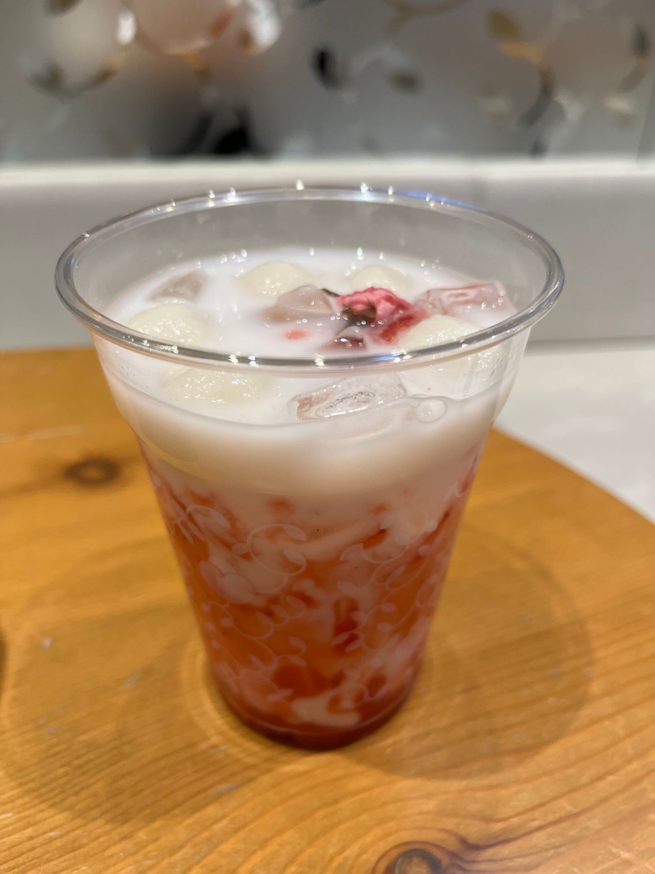 上には白玉5個、桜の花がのっていて、見た目もすごく可愛いです♡