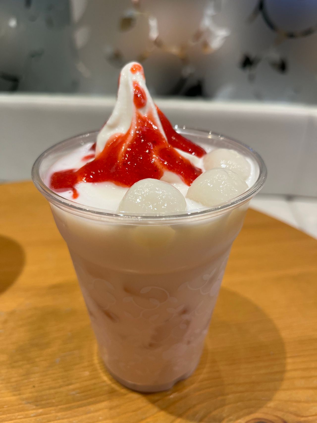 桜ストロベリーソフトクリームラテの一番の魅力は、ソフトクリームだけでなく、白玉が3つのっているところです!