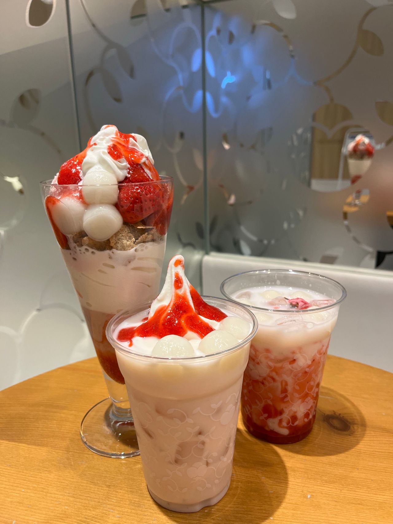 桜ストロベリーパフェと桜ストロベリー白玉ラテ、