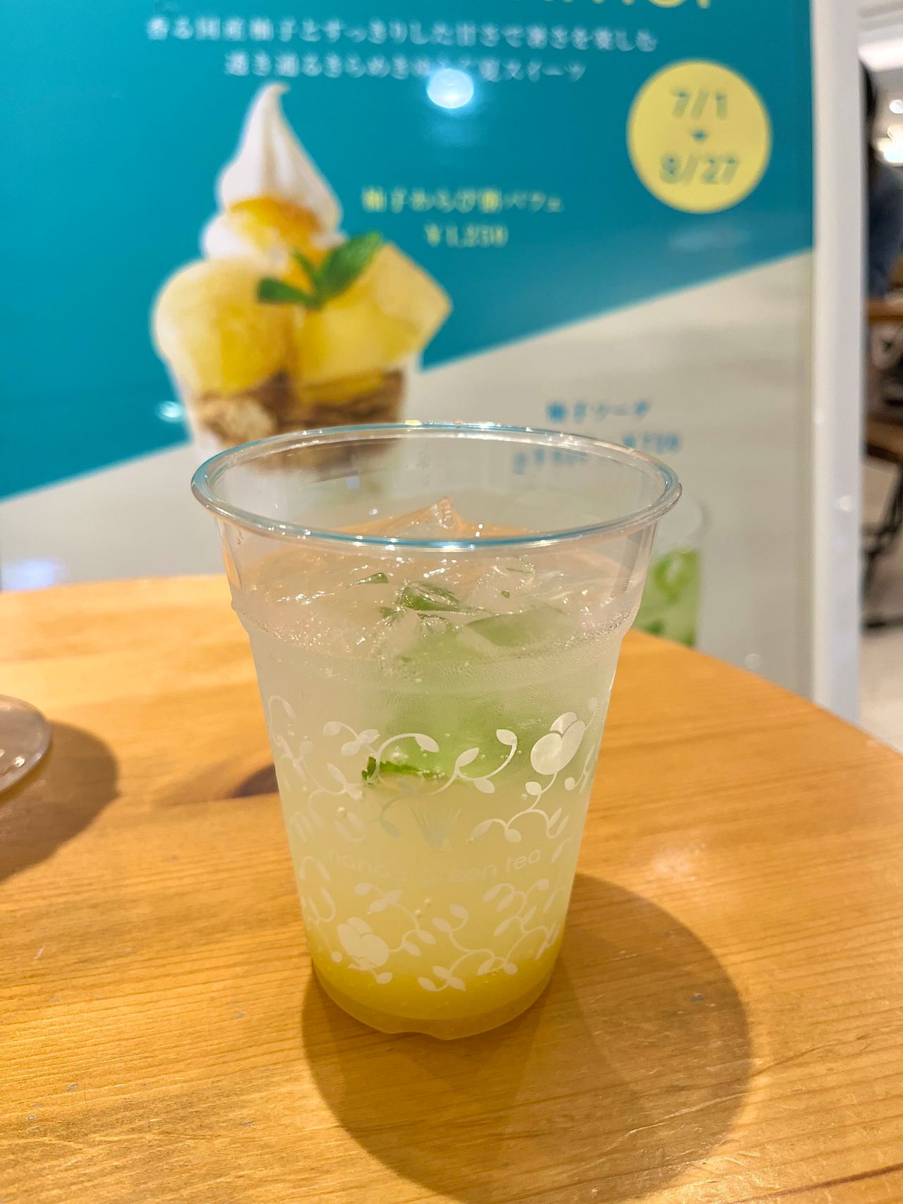 ゆずのいい香りがするこの柚子ソーダは、中にミントが入っており、飲むとほんのりとミントを感じられる涼しげなさっぱりとしたソーダです!