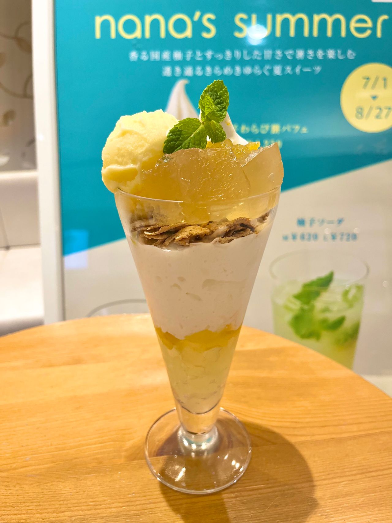 今回は新シーズンメニューの柚子わらび餅パフェと
