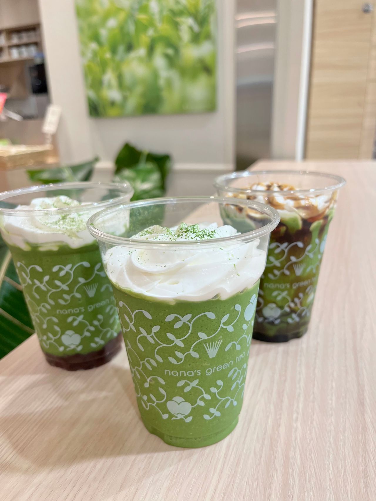 左から玉露あずきフローズン¥660、玉露フローズン¥680、玉露ゼリー黒蜜フローズン¥740