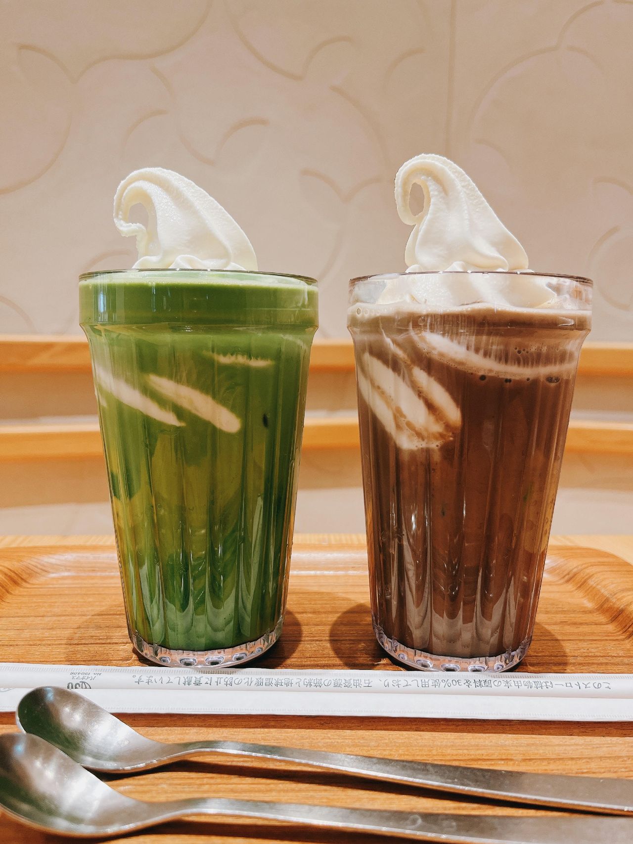 抹茶ソフトクリームラテとほうじ茶ソフトクリームラテ