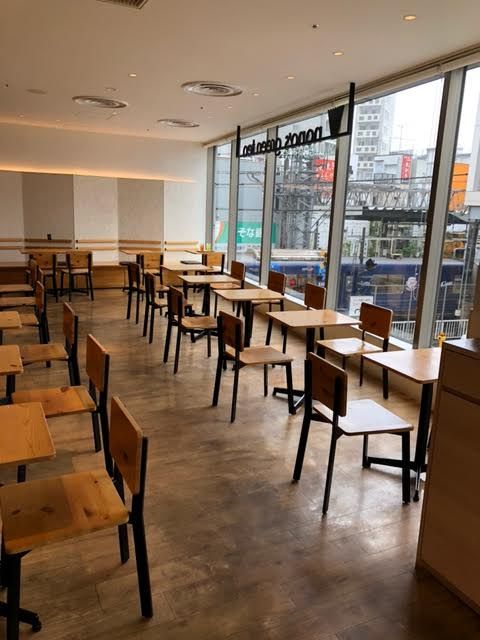 天井まである窓から、ひばりヶ丘駅前の景色をお楽しみいただける、明るく開放的な店内になっております。