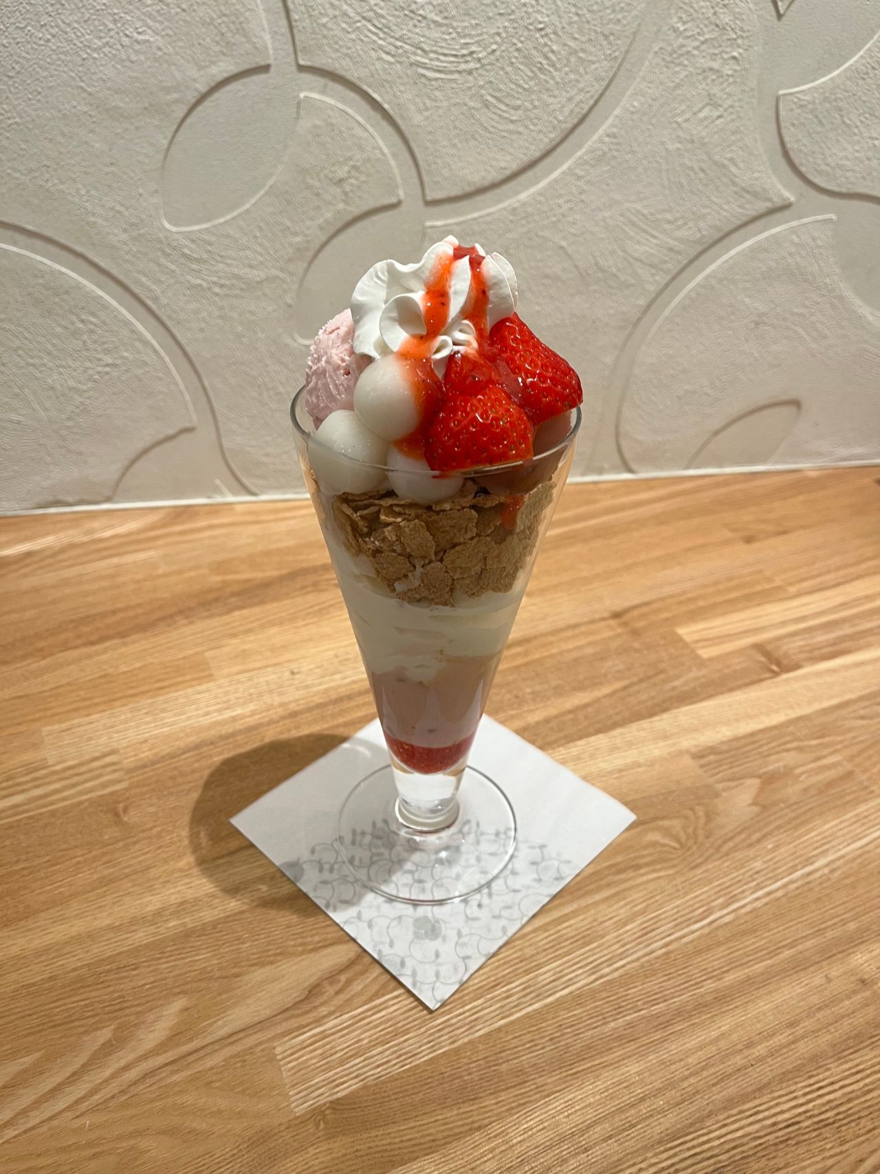 いちごと桜餡の相性バッチリ!!満足感のあるパフェになっています。