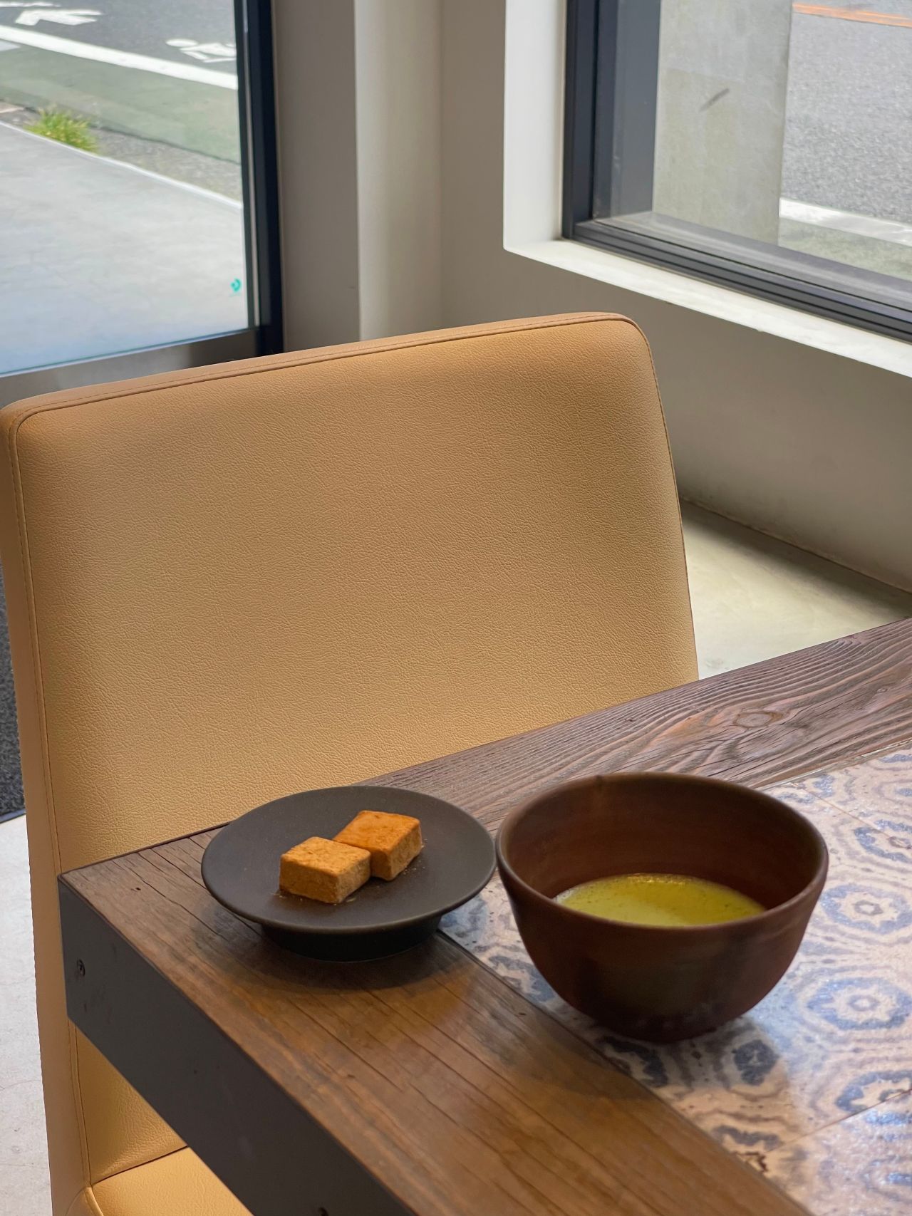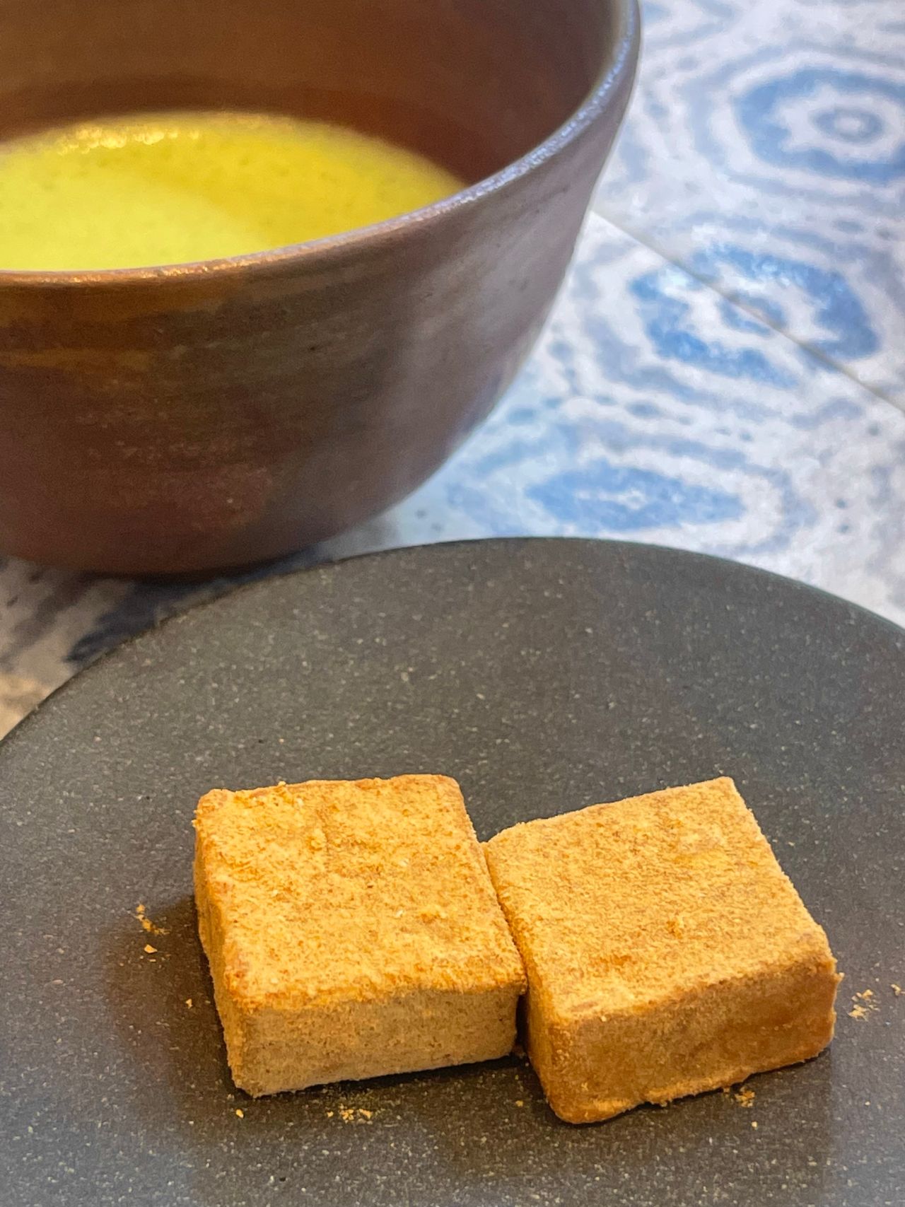 「 抹茶 ( きな粉生チョコレート付 ) 」¥600 - ( 税込 )