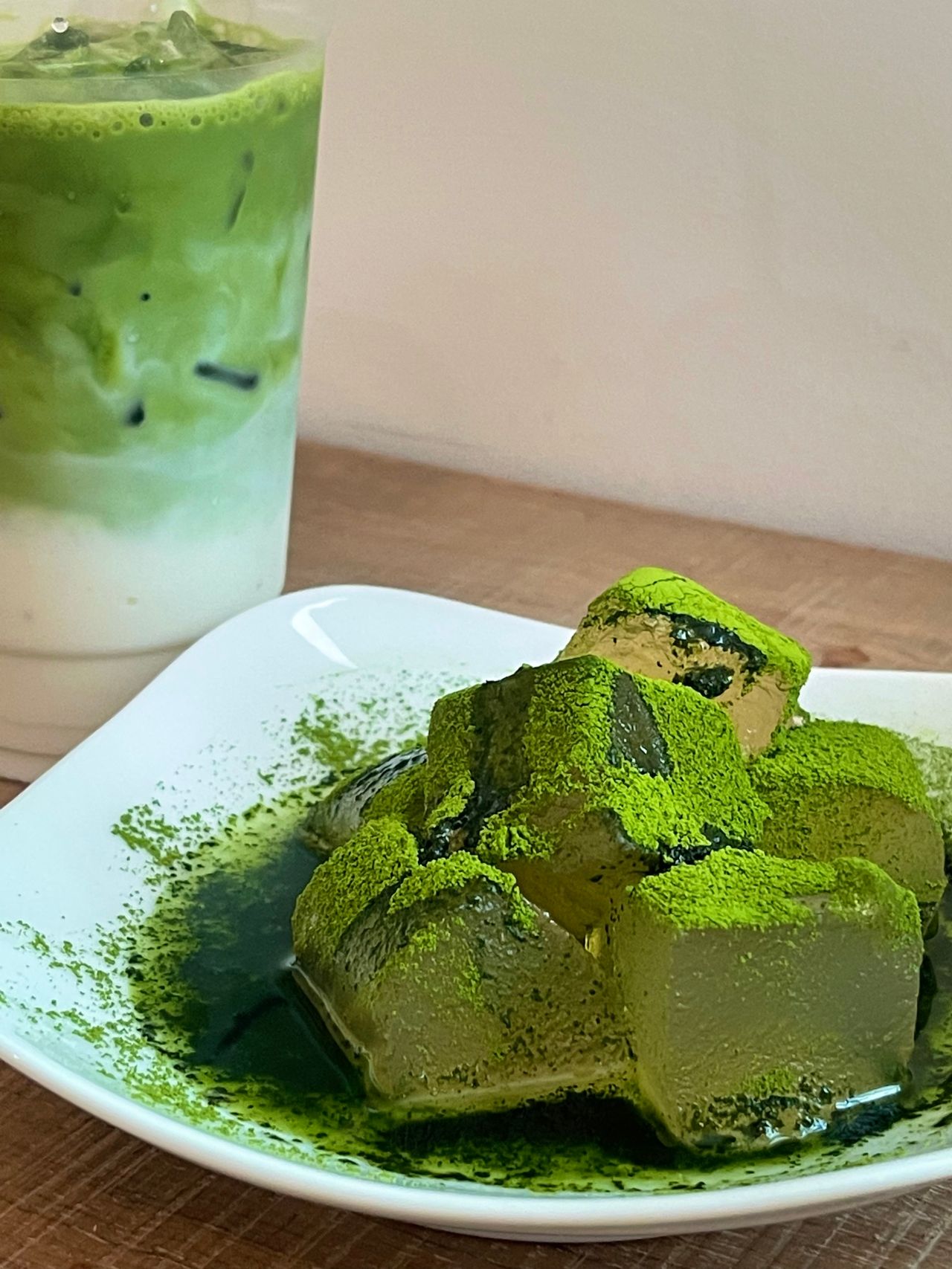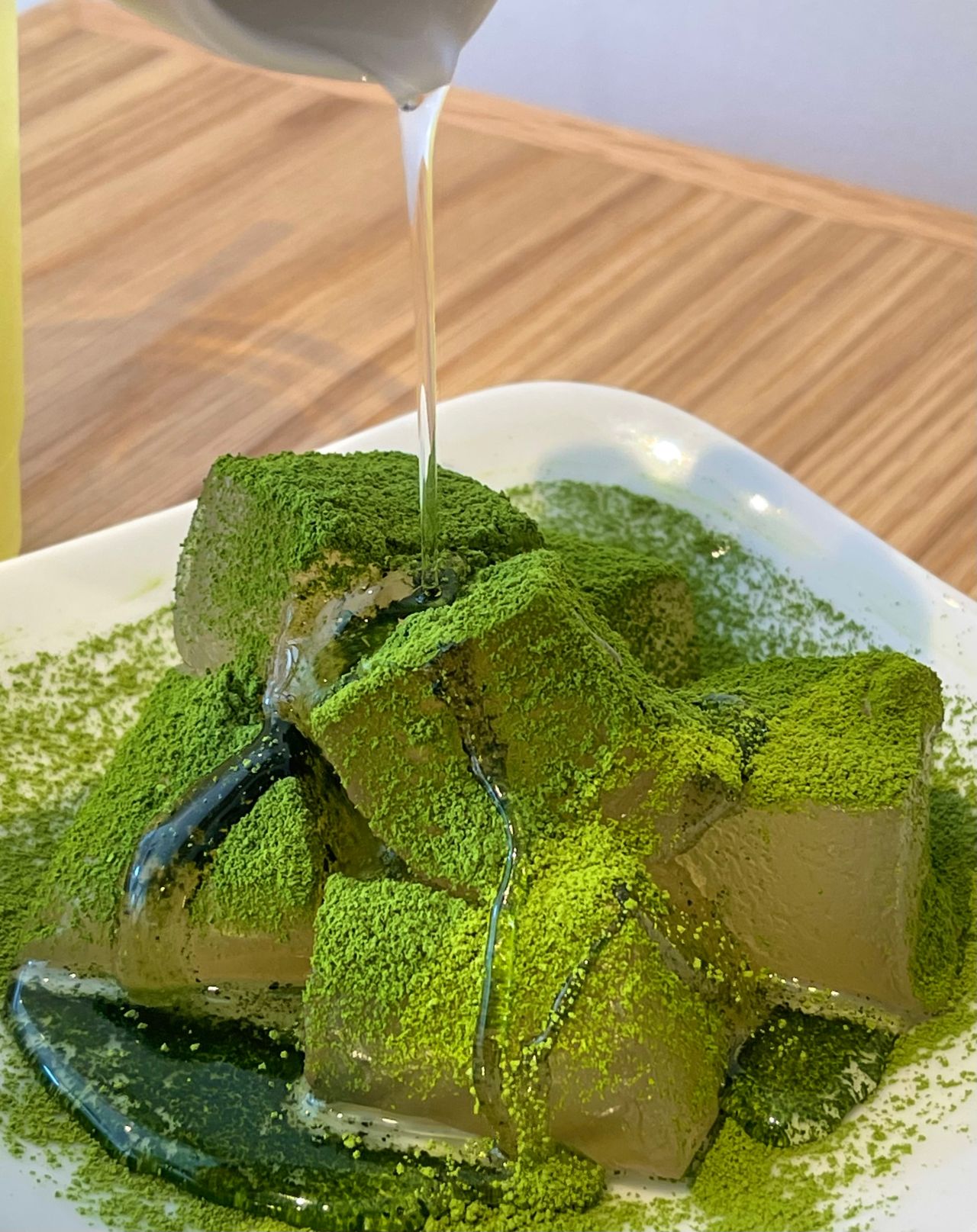 抹茶わらび餅は抹茶と白蜜でご提供しています!