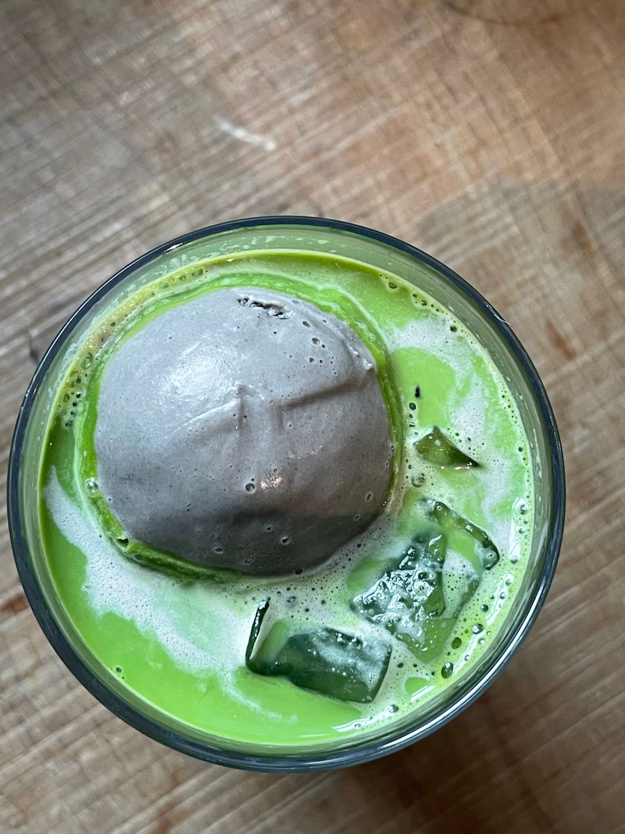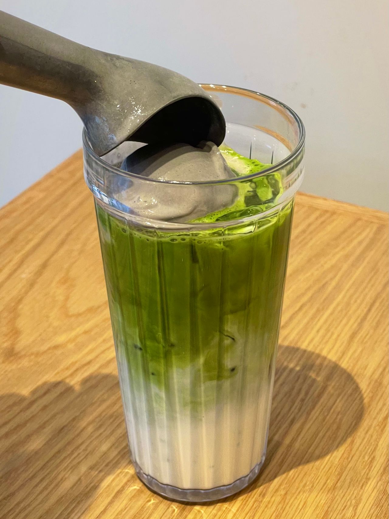 抹茶ラテに黒胡麻アイストッピングです…♡
