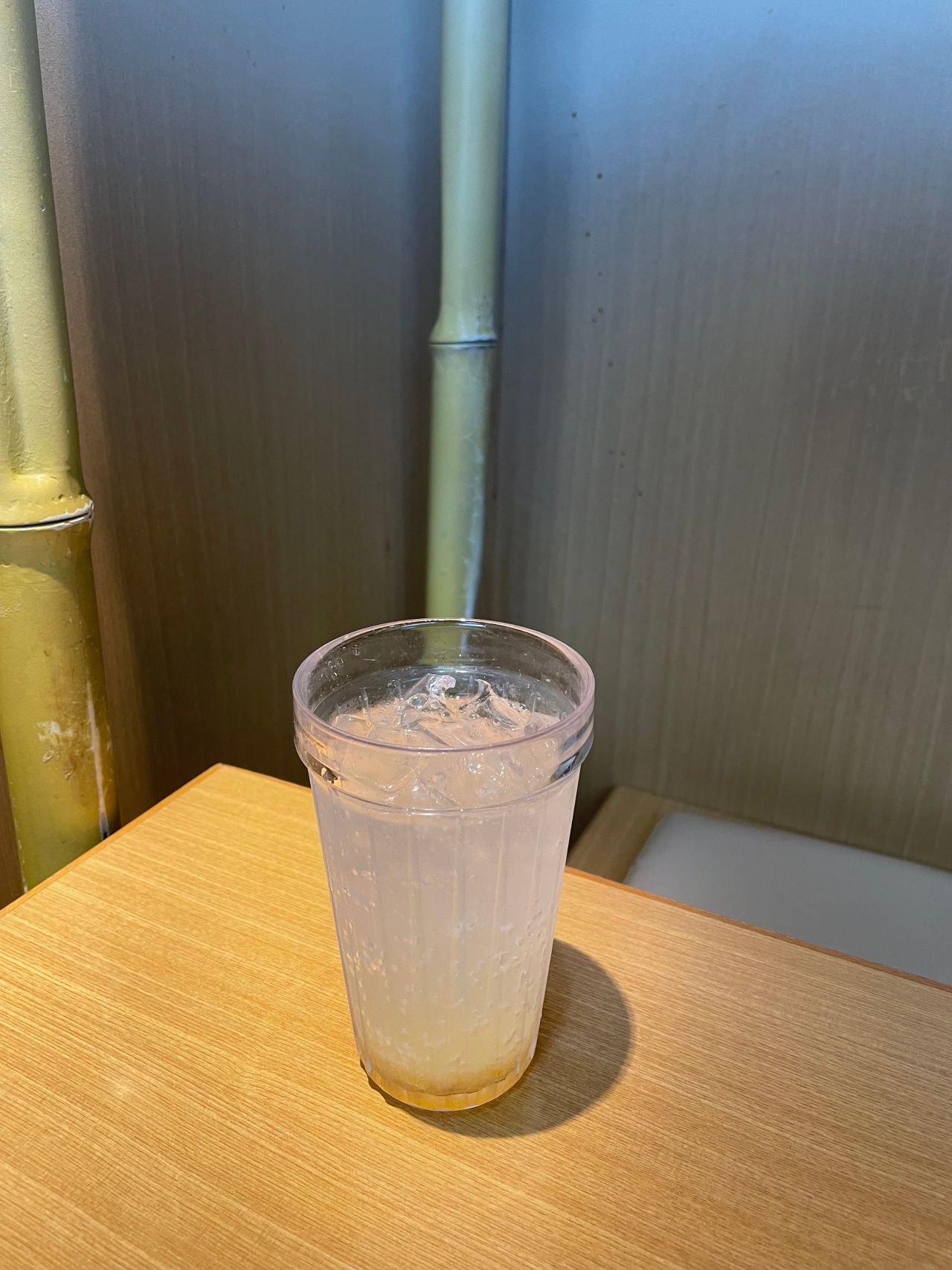 丸絞りレモンソーダはレモンの酸味が効いていてすっきりと飲みやすいドリンクになっております。下にはちみつと砂糖でつけたレモンシロップを使用しております。果肉が入っているのでストローで良くかき混ぜながらお召し上がりください。