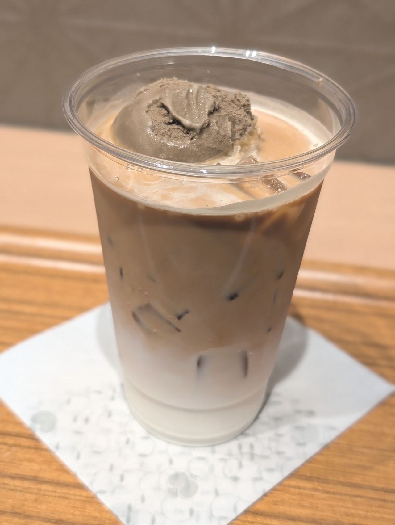 カフェラテの味を楽しみつつ、少しずつ溶けてくるほうじ茶アイスの甘さと香りがカフェラテに更なる深みを与えてくれます。
