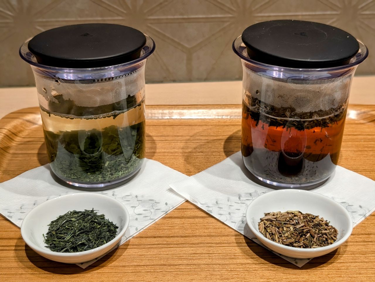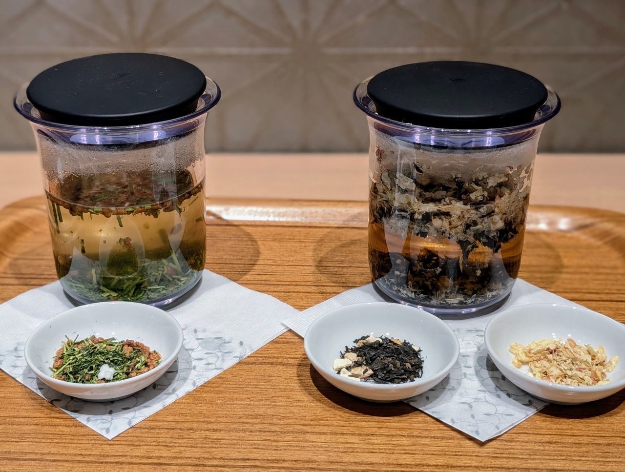 左.玄米茶 右.ジャスミン香る玉露紅茶