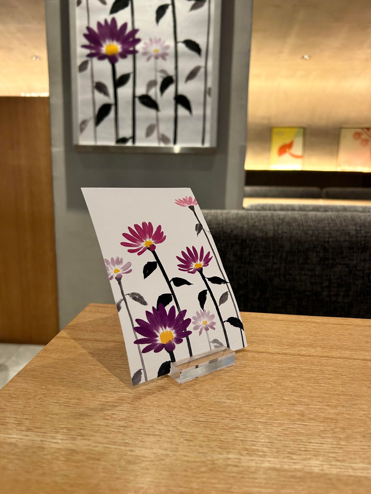 茶室に生ける野の花「茶花」のように、毎月茶花のアートワークを飾っています。