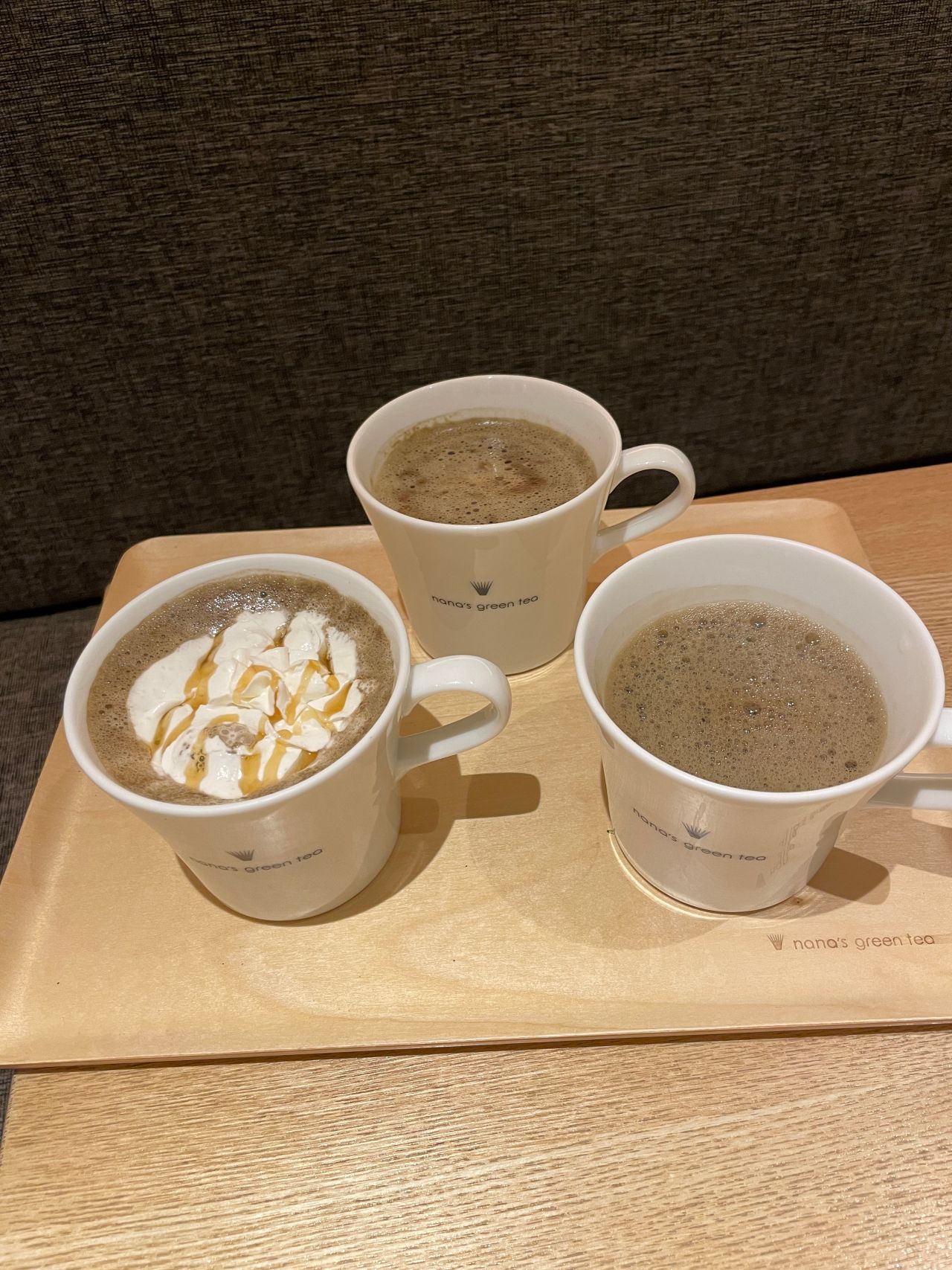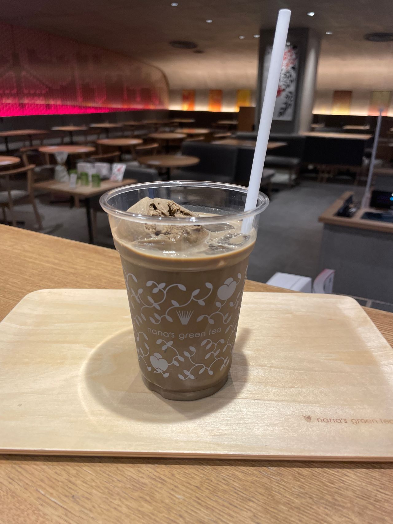 ほんのりした甘さのほうじ茶ラテにほうじ茶アイスをトッピングしています。