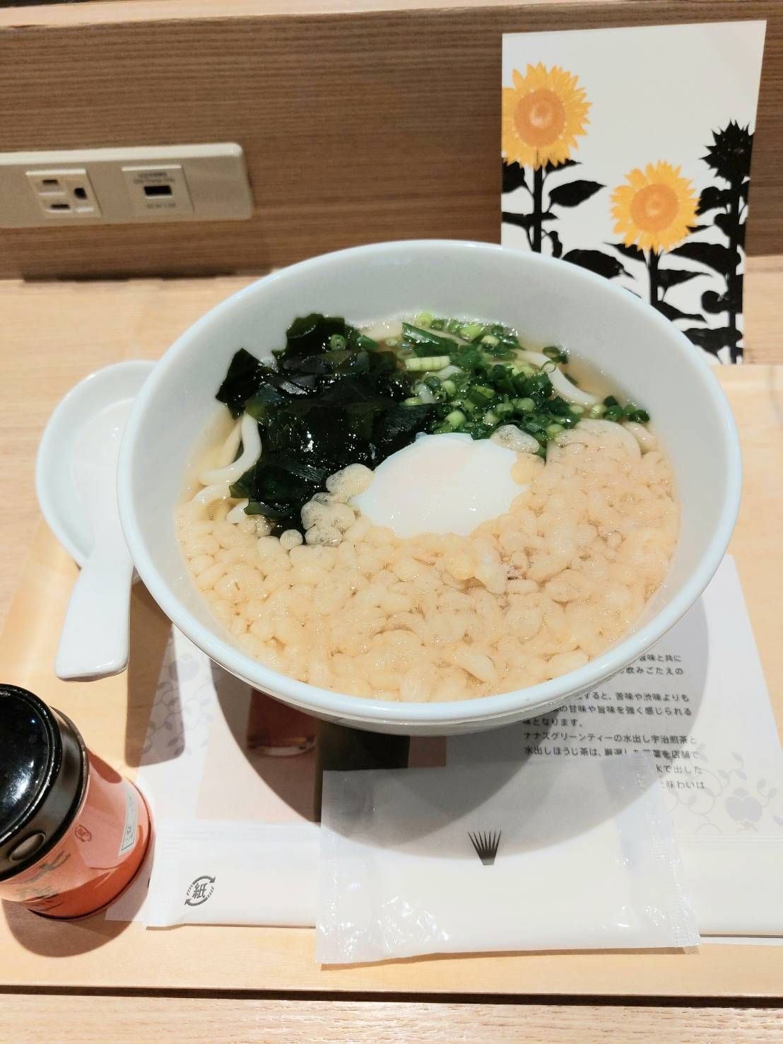 今回は、温泉卵たぬきうどん900円をご紹介いたします。