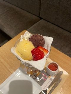 求肥、いちご、あずき、バニラアイス、ホイップ