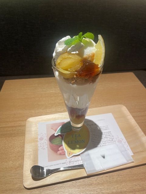 ミルクアイス、レモンあん、ホイップクリーム、レモン、紅茶ゼリー、ミントが乗っかています!