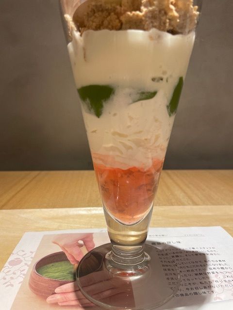 ほろ苦い抹茶ゼリーに抹茶のガトーショコラを乗せた、贅沢なパフェとなっております...!