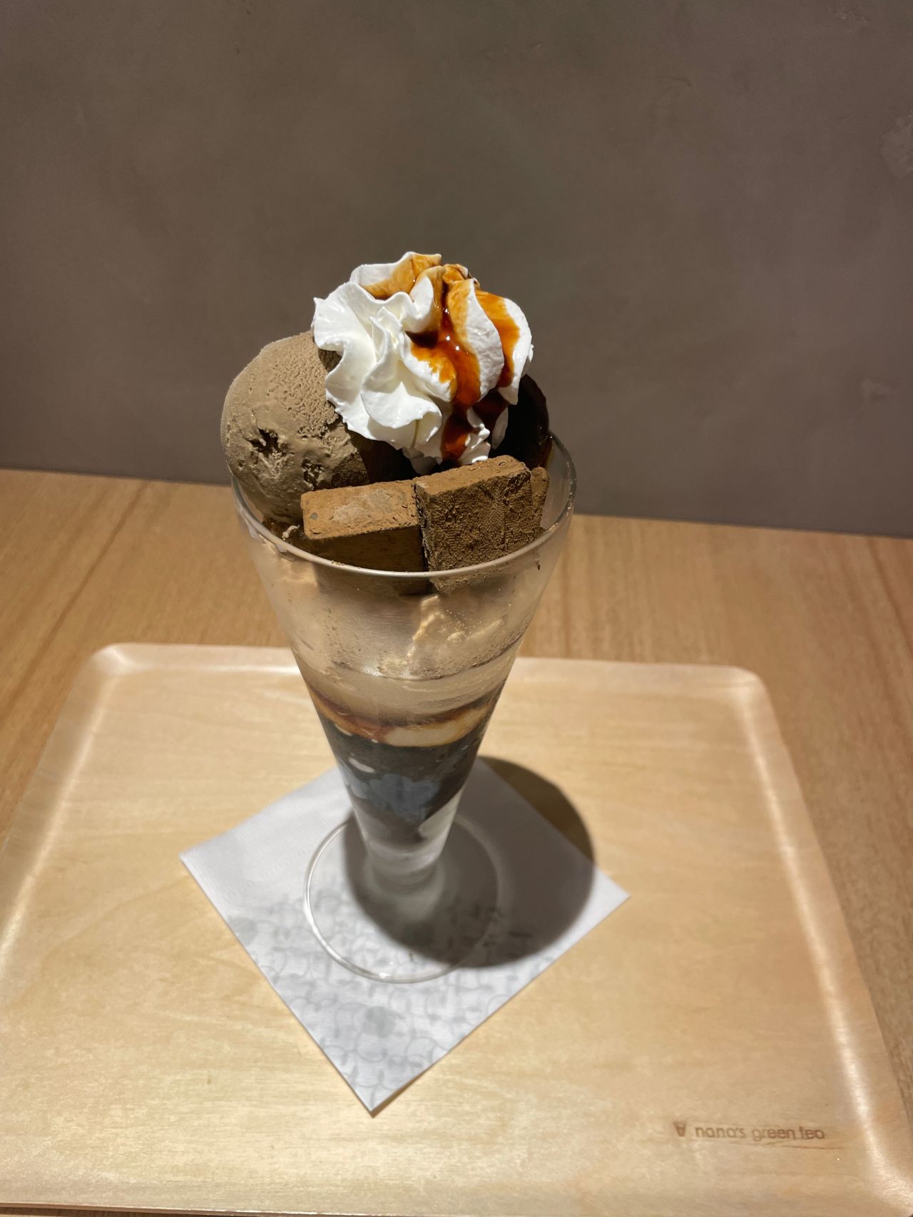 ほうじ茶好きさんに大好評のほうじ茶生チョコレートパフェ、