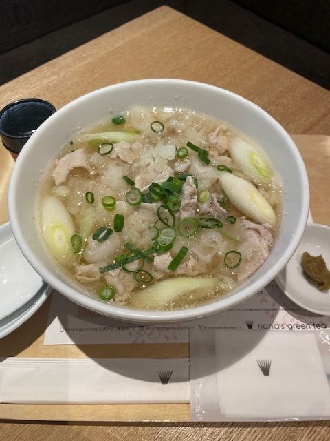 店内でとった出汁に大根の鬼おろし、長ネギ、豚ロースを煮込んでいます。柚子胡椒は別添えですのでお子様とシェアするお客様も多く人気のメニューとなっております。スタッフにも人気です♪