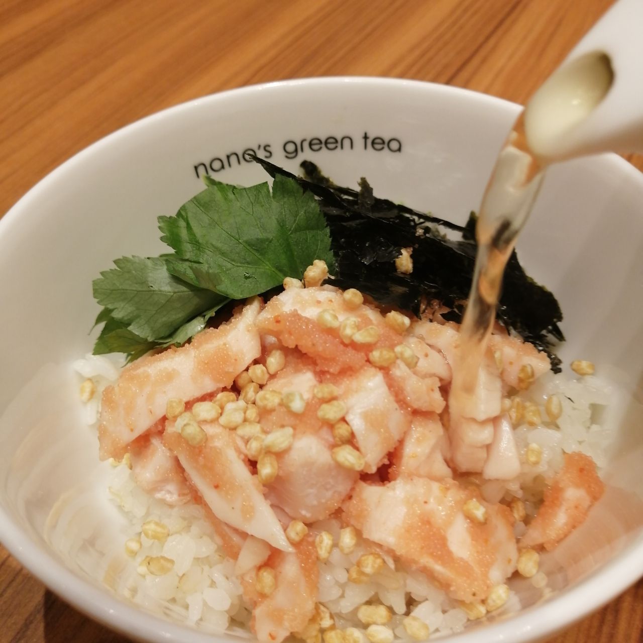 辛味のあるやわらか鶏明太の出汁茶漬けで
