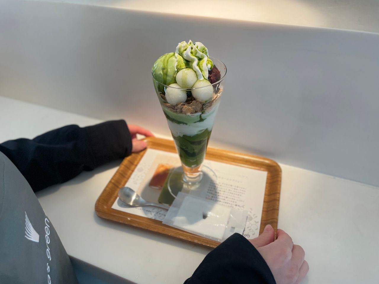 もちもちとした白玉や、オリジナルの抹茶アイスが合わさって
