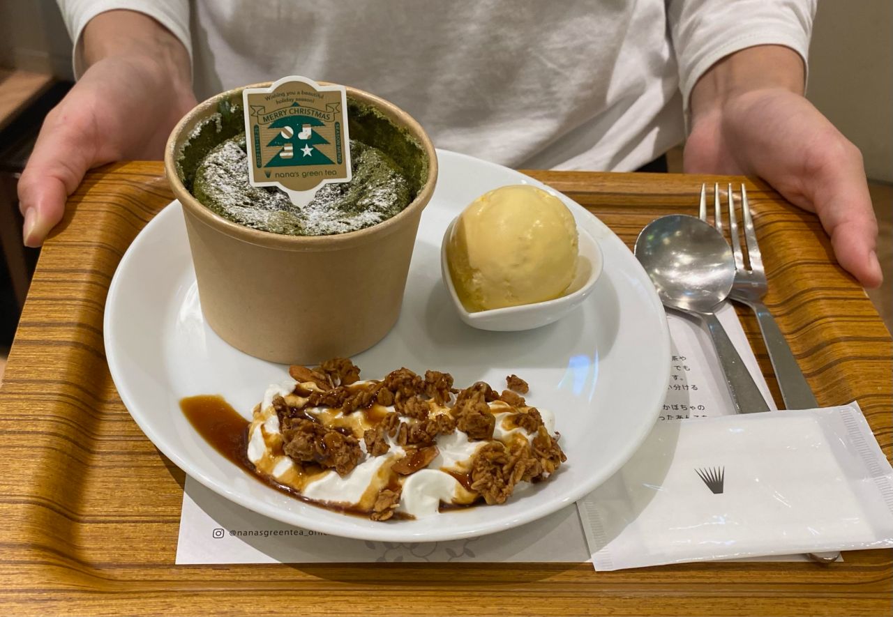 抹茶シフォン フォンダンプレート バニラアイス添え
