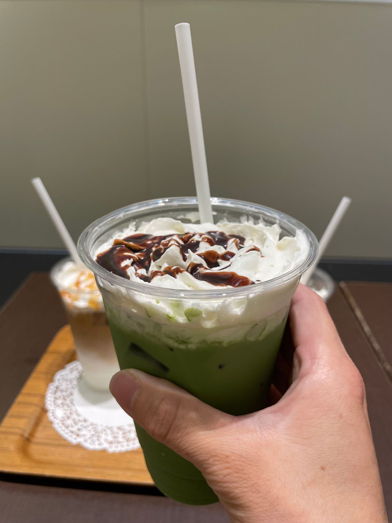 私は飲んだ事がない組み合わせでしたが、飲んでみると抹茶ラテの中にほのかにカカオの香りがしてとても美味しかったです!抹茶ラテは何度も飲んだ事がありましたが、トッピングを足す事で新たな魅力に出会いました♪